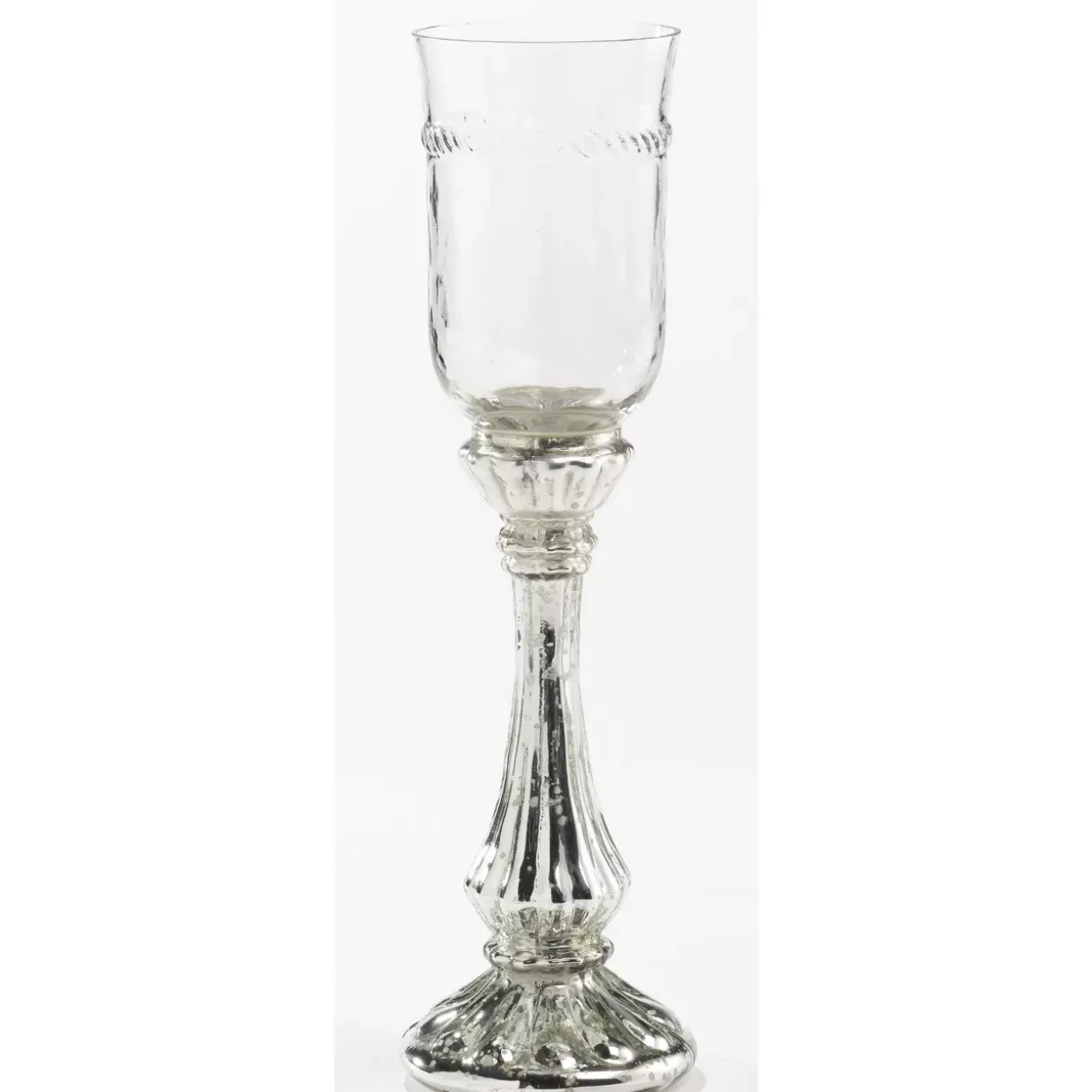 Klarheit und Eleganz vereinen sich in diesem modernen Windlicht. Das Zusammenspiel von Glas und antik silberfarbenen Akzenten verleiht jedem Raum eine zeitlose Anmutung. Für jene, die ein Auge für Details haben, bietet das klare Design eine perfekte Bühne, um das sanfte Flackern einer Kerze in den Mittelpunkt zu rücken.