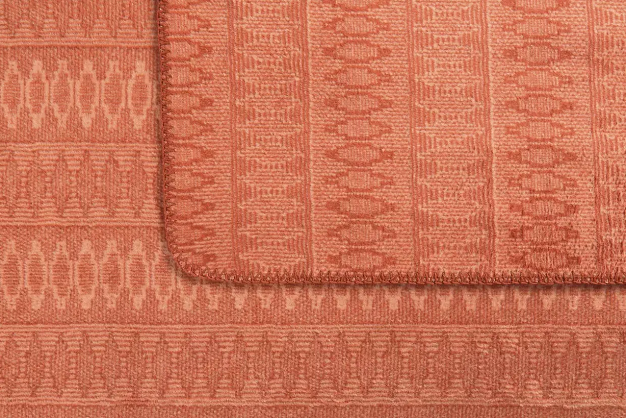 Die hochwertige Kuscheldecke Malindi in einem warmen Kupferton überzeugt durch ihr kunstvolles Design. Inspiriert von traditionellen afrikanischen Korbwaren, bringt das graphische Muster eine natürliche Eleganz in jeden Raum. Der rechteckige Schnitt und der konventionelle Stil machen sie zu einem zeitlosen Wohnaccessoire, das sich perfekt in unterschiedliche Einrichtungsstile einfügt.