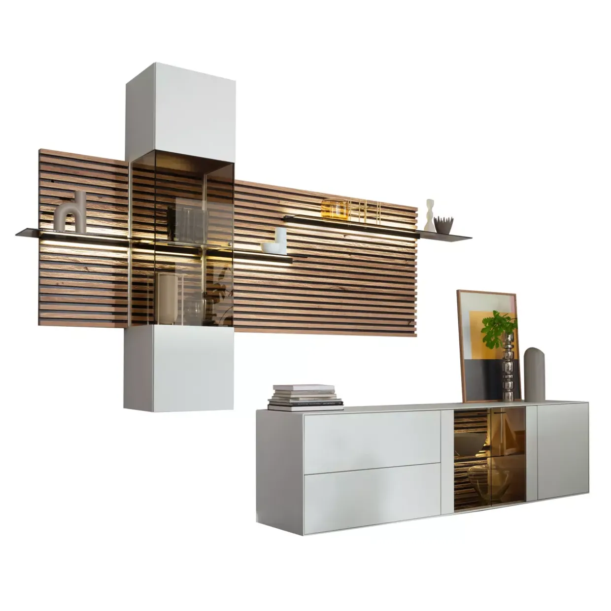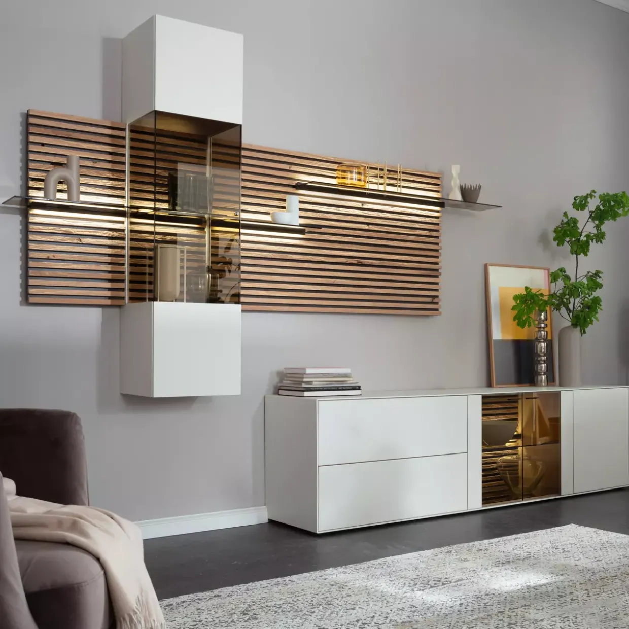 Für jene, die auf der Suche nach einer eleganten und funktionalen Lösung sind, bietet diese Wohnkombination eine ideale Verbindung aus ästhetischem Design und praktischen Features. Sie vereint Handwerkskunst mit zeitgemäßer Funktionalität und macht so jeden Wohnbereich zu einem stilvollen Ort der Entspannung.