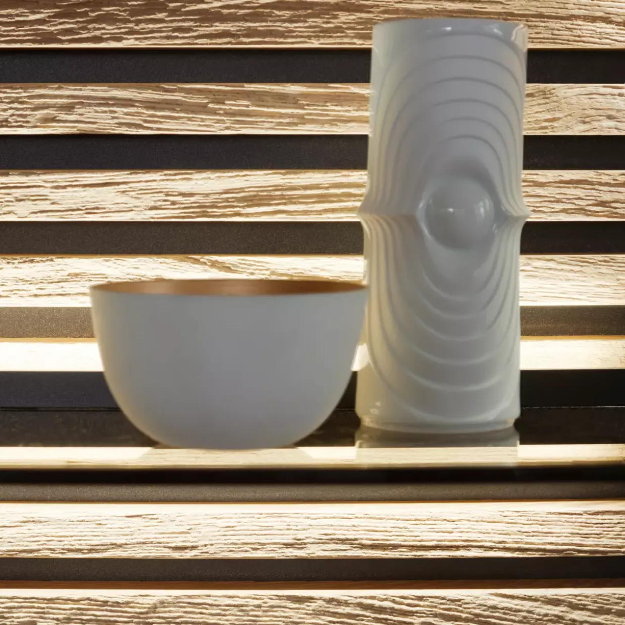 Die moderne Wohnkombination Yonna beeindruckt mit ihrer eleganten Lackierung und den einzigartigen Details. Eine der auffälligsten Eigenschaften ist die harmonische Kombination aus Birke massiv in Weiß und der natürlichen, gebürsteten Kerneiche, die Wärme und Stil in Ihren Wohnraum bringt. Die Lamellenrückwand in Riffholzoptik sorgt für ein strukturiertes, ansprechendes Design, das jedem Raum Tiefe und Charakter verleiht.