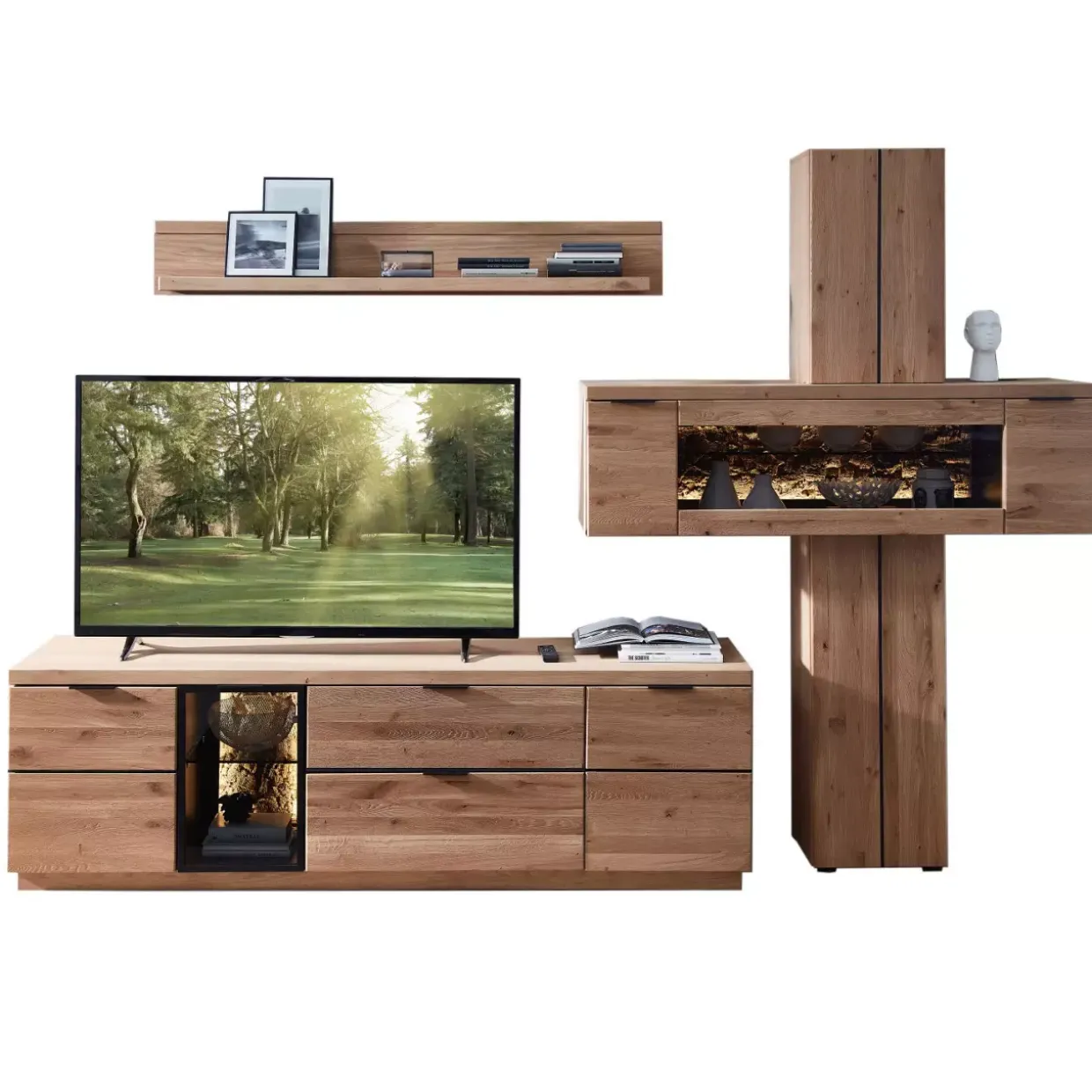 bestehend aus: 1 Stauraum-Säule / 1 Lowboard / 1 Wandbord