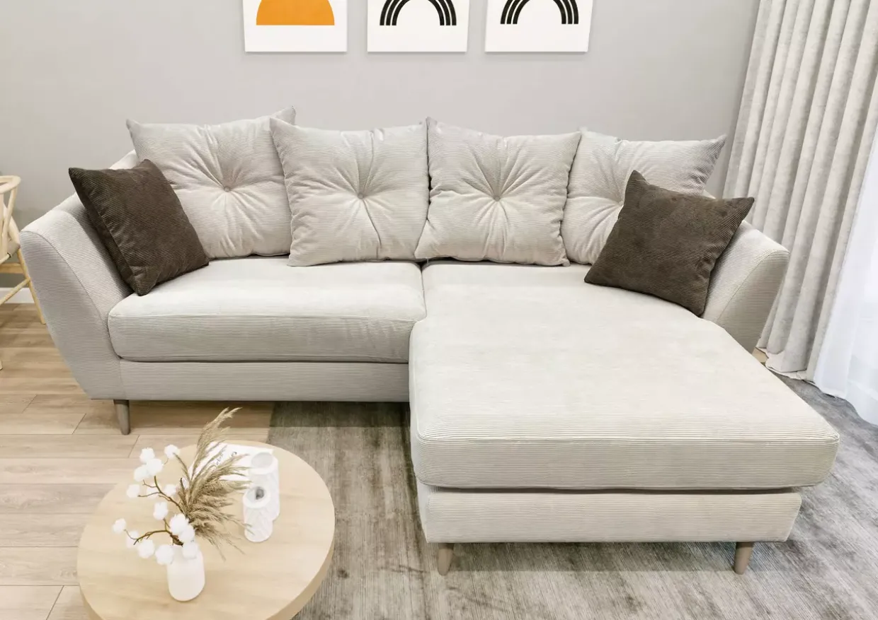 Mit seiner Freistellbarkeit lässt sich das Sofa flexibel in jeden Raum integrieren, ohne Kompromisse bei der Ästhetik einzugehen. Der Rücken ist echt bezogen, was nicht nur optisch überzeugt, sondern auch für zusätzlichen Komfort sorgt. Ein besonderes Highlight bilden die Kissen: Zwei Zierkissen und vier Rückenkissen, alle im selben Cordbezug wie das Sofa, laden zum Entspannen ein.