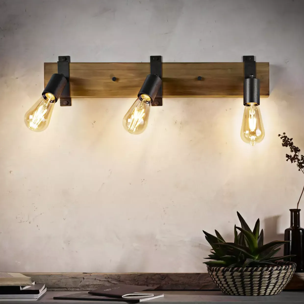 Die 3er Wand-/Deckenleuchte Antik, zeichnet sich durch ihren Vintage- aber auch durch ihren eleganten Look aus. Die Leuchten sind neigbar und individuell einstellbar.
