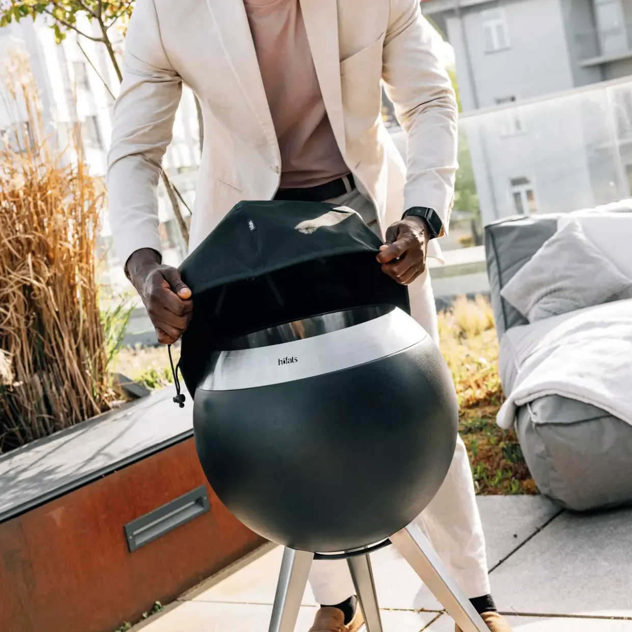 Ob für den Innen- oder Außenbereich, die Abdeckung überzeugt durch ihre Vielseitigkeit. Das Textilmaterial verleiht der Haube eine ansprechende Optik und sorgt zugleich für einen zuverlässigen Schutz. Besonders bei wechselnden Wetterbedingungen erweist sich die Kombination der Materialien als vorteilhaft, da sie sowohl wasserabweisend als auch strapazierfähig ist.