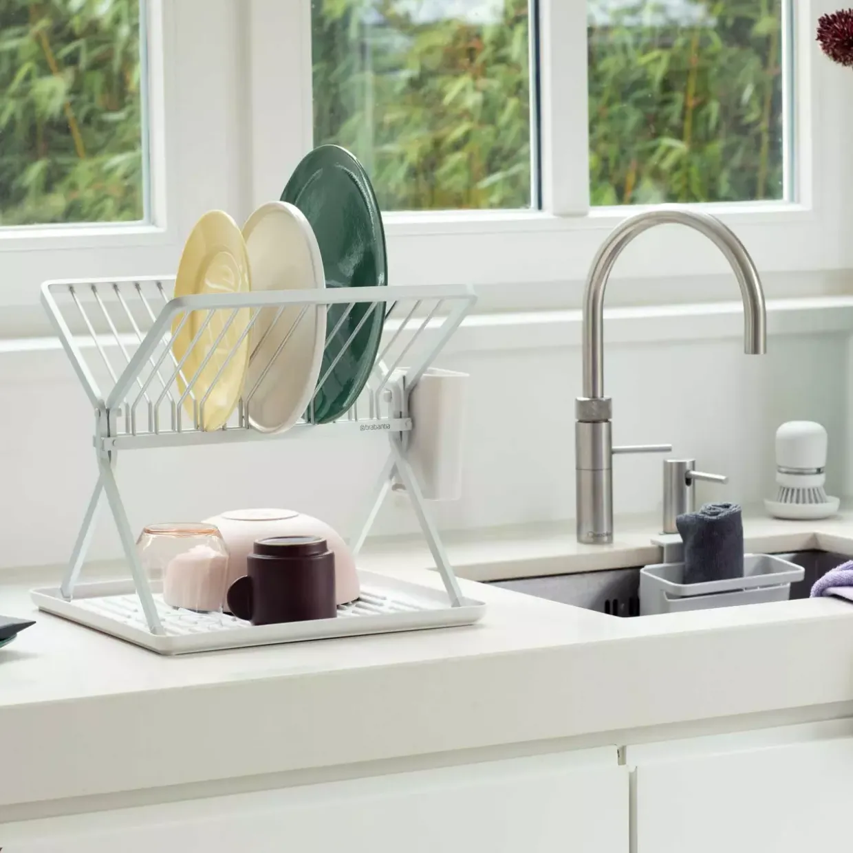Vielseitigkeit trifft auf Design. Das Abtropfgestell lässt sich mühelos zusammenklappen und platzsparend verstauen, wenn es nicht in Gebrauch ist. Dies macht es besonders praktisch für kleinere Küchen oder Haushalte, in denen Platz eine wichtige Rolle spielt. Die clevere Kombination der Materialien sorgt dafür, dass es sowohl robust als auch widerstandsfähig gegenüber Feuchtigkeit und Abnutzung ist.