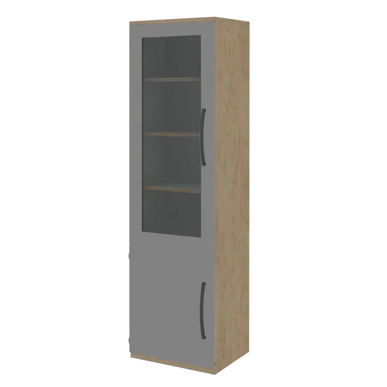 Ein Hauch von Eleganz wird durch die stilvolle Farbgebung in Hickory, Mittelgrau und Anthrazit verliehen. Diese harmonische Kombination fügt sich nahtlos in jedes moderne Büro- oder Arbeitszimmer ein. Praktisch und funktional zugleich, bietet das Aktenelement ausreichend Stauraum mit vier Einlegeböden und einem festen Boden.