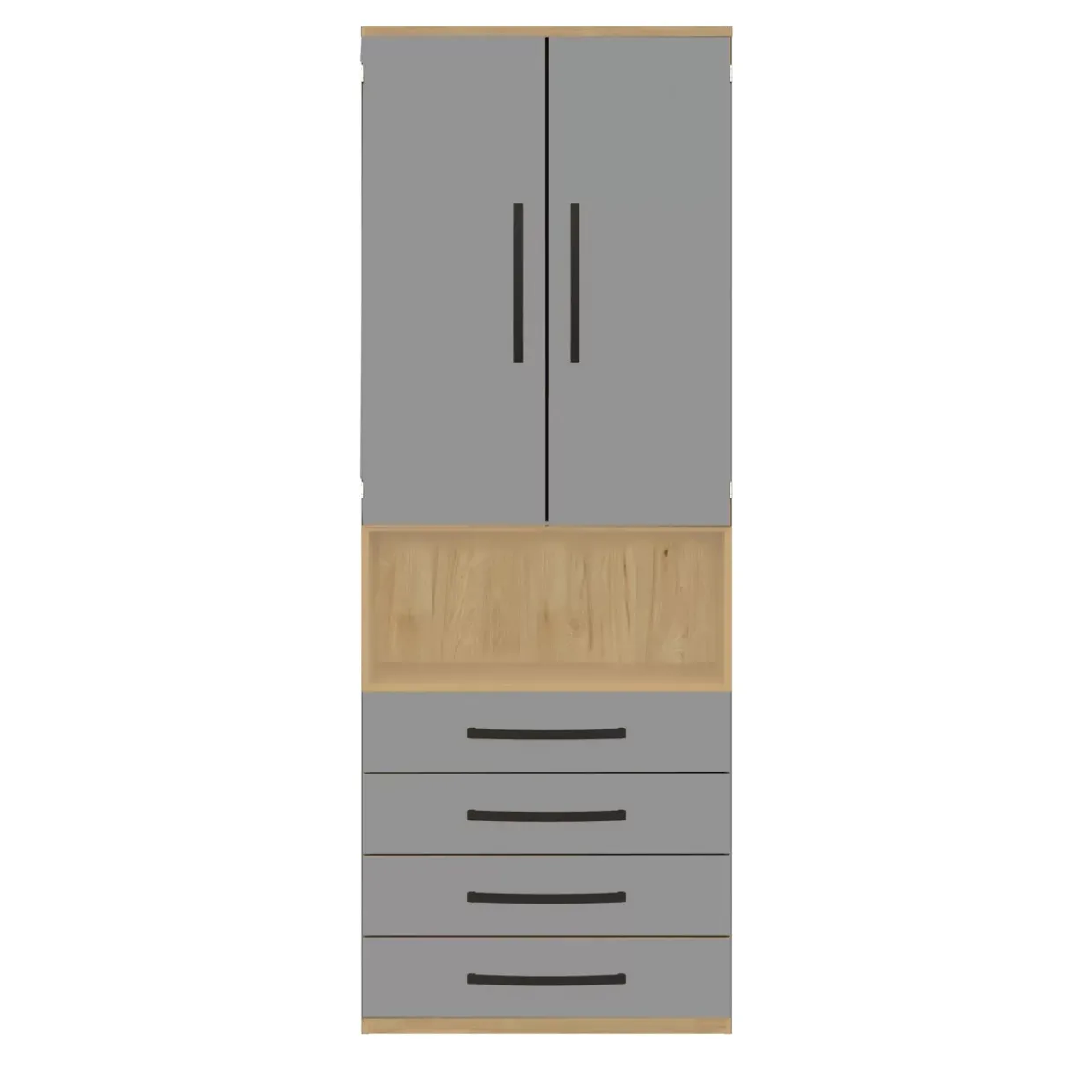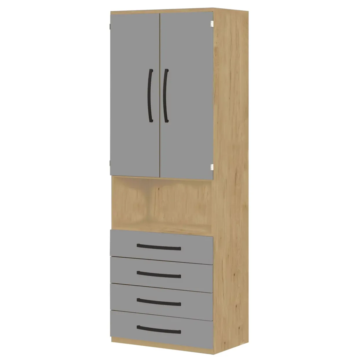 Mit den Farben Hickory Nachbildung, mittelgrau und anthrazit fügt sich das Element mühelos in verschiedene Interieur-Stile ein. Zwei Türen und vier Schubkästen bieten reichlich Stauraum für Akten, Unterlagen und persönliche Gegenstände. Ergänzt wird die Funktionalität durch zwei Einlegeböden, die zusätzliche Flexibilität bei der Organisation ermöglichen.