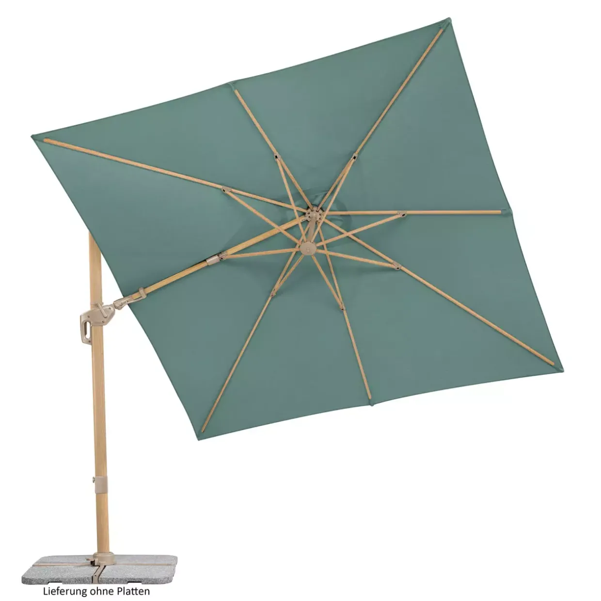 Ein Hauch von Leinenstruktur verleiht dem Sonnenschirm Rhodos Twist Loft eine moderne Eleganz, die sich nahtlos in jede stilvolle Umgebung einfügt. Die harmonische Kombination aus holzoptik und grün schafft eine natürliche Atmosphäre, die zum Entspannen einlädt.