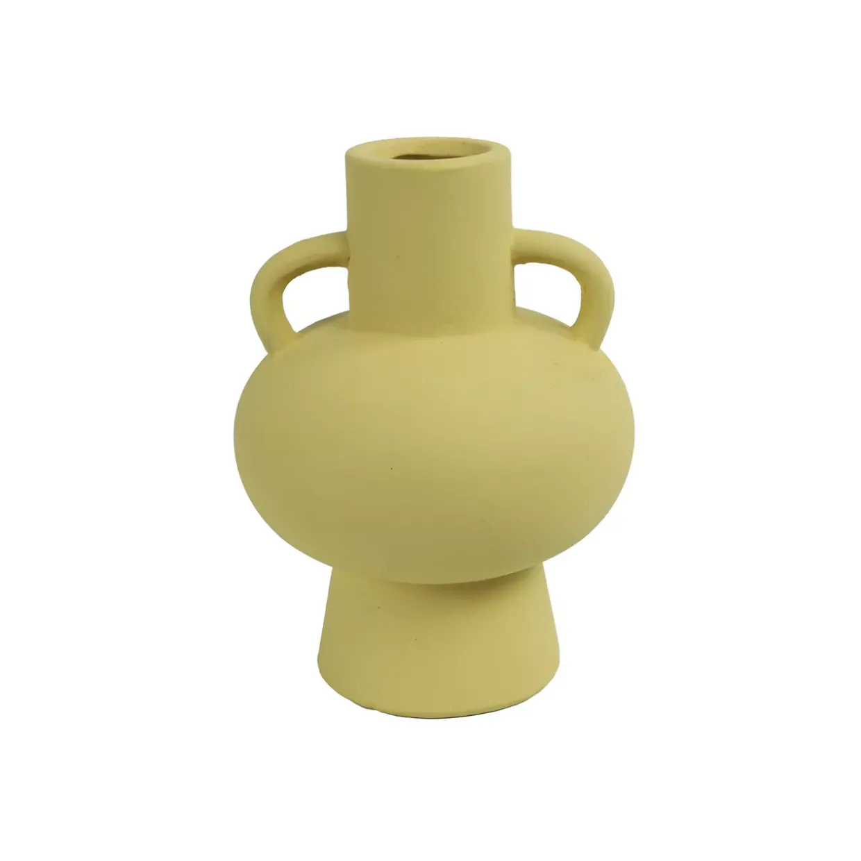 Gelbe Eleganz trifft auf moderne Formgebung. Die Amphore Debbie aus hochwertigem Steingut vereint zeitgemäßen Stil mit klassischem Design. Mit ihrem lebendigen Gelbton setzt sie einen frischen Akzent in jedem Raum und zieht alle Blicke auf sich. Steingut ist bekannt für seine Robustheit und Vielseitigkeit, was diese Keramik besonders langlebig und pflegeleicht macht.