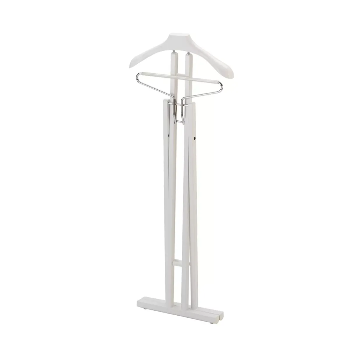 In der Welt der Ordnung und Eleganz spielt der Anzugständer Livorno eine bedeutende Rolle. Aus hochwertiger Buche gefertigt, strahlt er eine natürliche Anmut aus, die sich harmonisch in jeden Raum einfügt. Die weiße Farbgebung verleiht ihm eine zeitlose Eleganz und verstärkt sein konventionelles Design, das sowohl Funktionalität als auch Ästhetik in den Vordergrund stellt.Seine Klappfunktion ist ein besonderes Highlight. Diese praktische Eigenschaft ermöglicht es Ihnen, den Ständer bei Bedarf einfach zu verstauen und ihn bei Gebrauch wieder in Form zu bringen. Das durchdachte Design sorgt dafür, dass er auch in kleineren Räumen Platz findet, ohne an Stabilität oder Stil einzubüßen.Der Anzugständer Livorno vereint edles Holz mit robustem Aluguss, der als Metallart verwendet wird. Diese Kombination gewährleistet sowohl Langlebigkeit als auch ein ansprechendes Erscheinungsbild. Für die Pflege empfiehlt es sich, den Ständer trocken abzuwischen, um die Struktur des Holzes zu erhalten und seine natürliche Schönheit zu bewahren. Der Anzugständer Livorno ist mehr als nur ein Möbelstück; er ist ein stilvoller Begleiter, der Ihre Garderobe mit Sorgfalt und Eleganz präsentiert. So wird jedes Kleidungsstück zu einem Highlight.