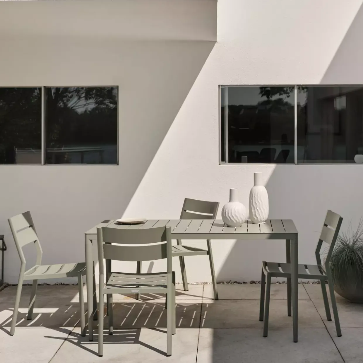 Mit seiner stapelbaren Eigenschaft bietet der Delia Stuhl eine praktische Lösung für platzsparende Lagerung, besonders in der sommerlichen Saison, wenn Flexibilität gefragt ist. Die sanfte, matte Farbe Dusty Green bringt einen Hauch von Frische auf Ihre Terrasse, ohne aufdringlich zu wirken.