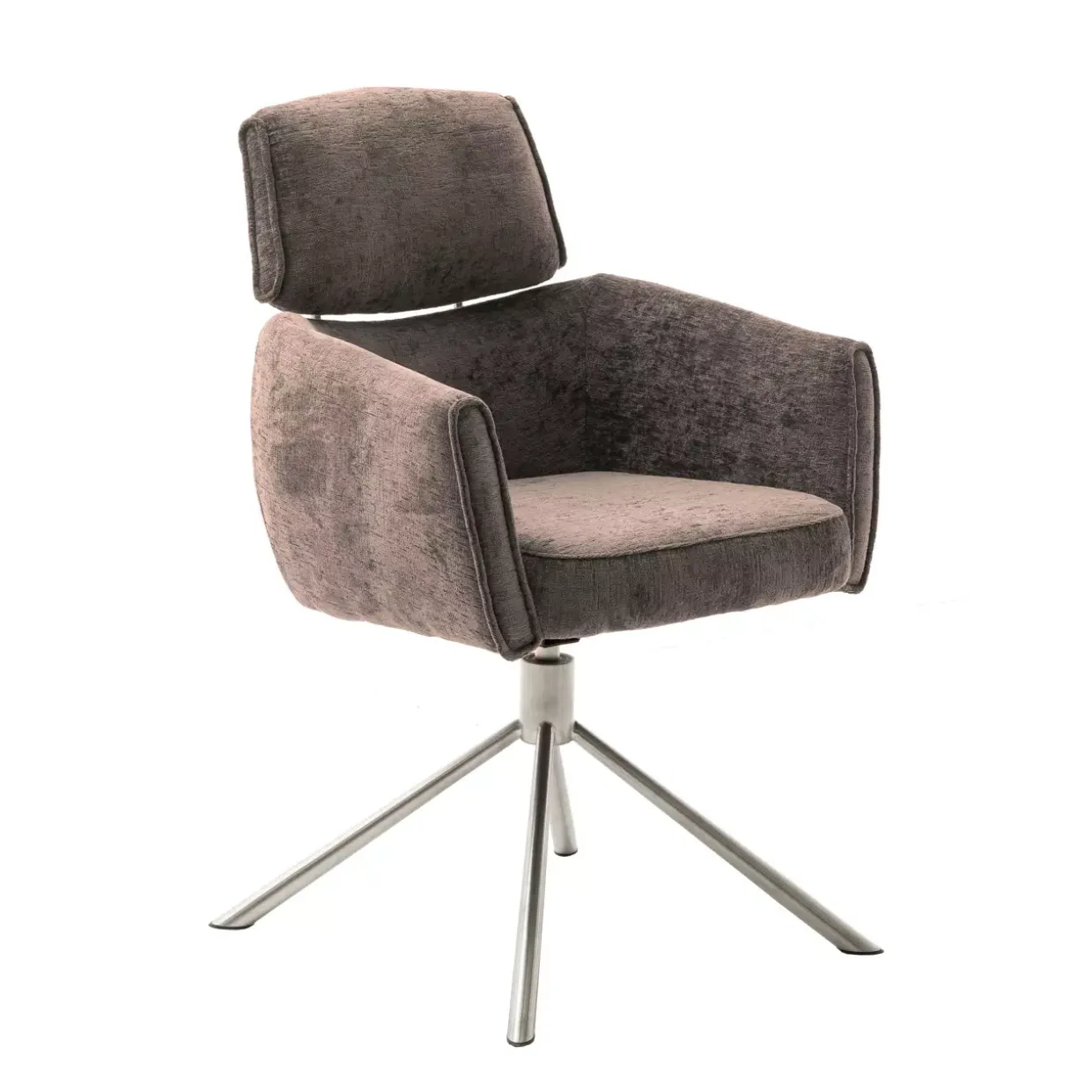 Ein eleganter Hauch von Chenille-Optik prägt den Quebec Stuhl mit Armlehnen und verleiht ihm eine besondere Ausstrahlung. Die Kombination aus edlem Edelstahl und hochwertigem Polyester-Stoff sorgt für einen zeitlosen und dennoch modernen Look. Mit der praktischen 360 Grad Drehfunktion erleben Sie Flexibilität und Komfort in einem. Ein weiterer Pluspunkt ist die durchdachte Polsterung mit Taschenfederkern, die für ein angenehmes Sitzgefühl sorgt und langanhaltenden Komfort verspricht. Das gebürstete Edelstahl-Fußgestell verleiht dem Stuhl Stabilität und einen stilvollen Touch. Der bewegliche Rücken bietet zusätzliche Bequemlichkeit und unterstützt die Anpassung an individuelle Sitzpositionen. Ein funktionaler Griff ermöglicht zudem ein müheloses Verschieben des Stuhls, wenn Sie Ihre Sitzordnung ändern möchten. Dieses Möbelstück verbindet konventionellen Stil mit modernen Funktionalitäten und passt sich mühelos in verschiedene Einrichtungsstile ein. Der Quebec Stuhl mit Armlehnen ist mehr als nur eine Sitzgelegenheit – er ist eine Bereicherung für Ihr Zuhause, die sowohl Ästhetik als auch Funktionalität vereint. Ob im Esszimmer oder im Büro, dieses Möbelstück erfüllt hohe Ansprüche an Design und Komfort und wird schnell zu einem unverzichtbaren Bestandteil Ihrer Einrichtung.
