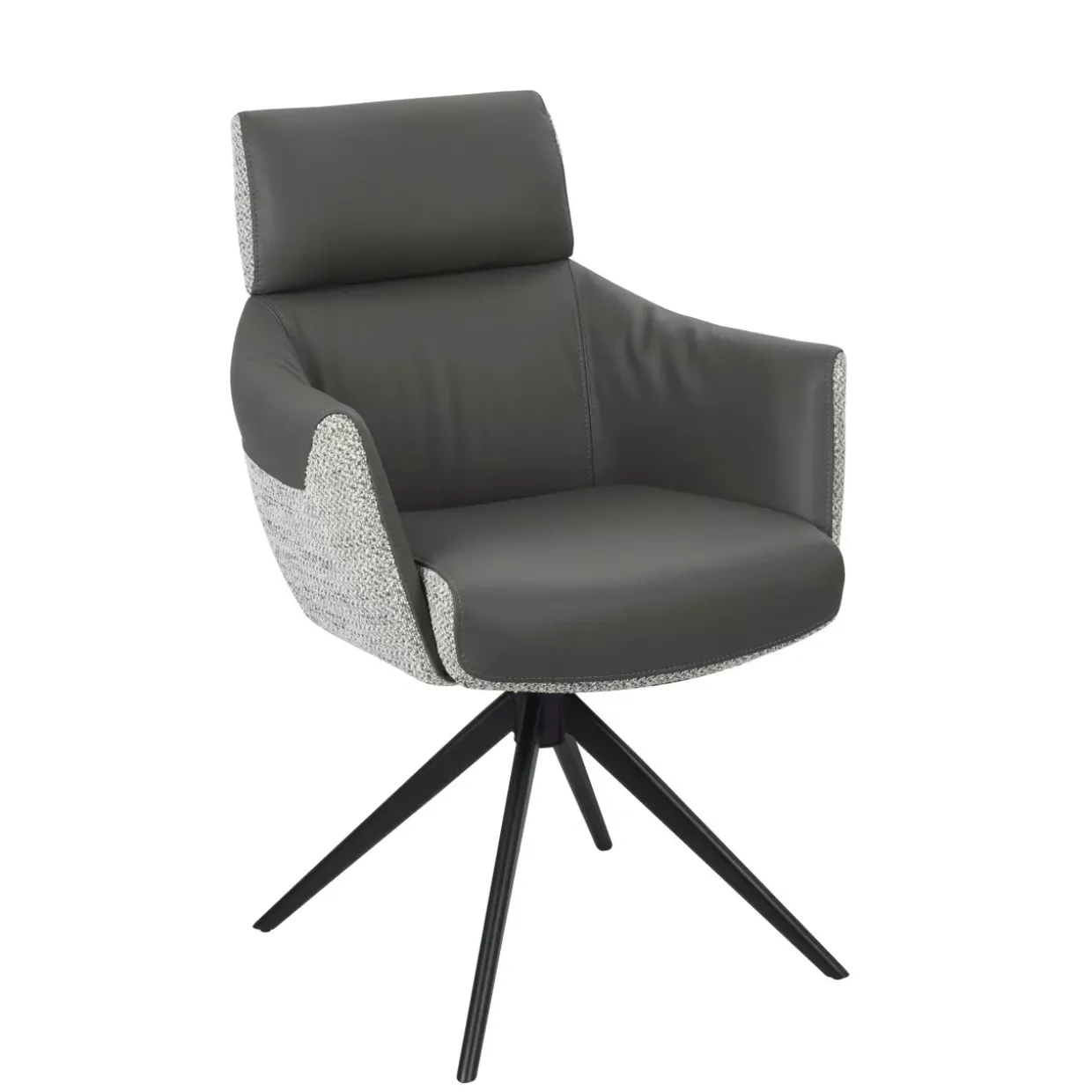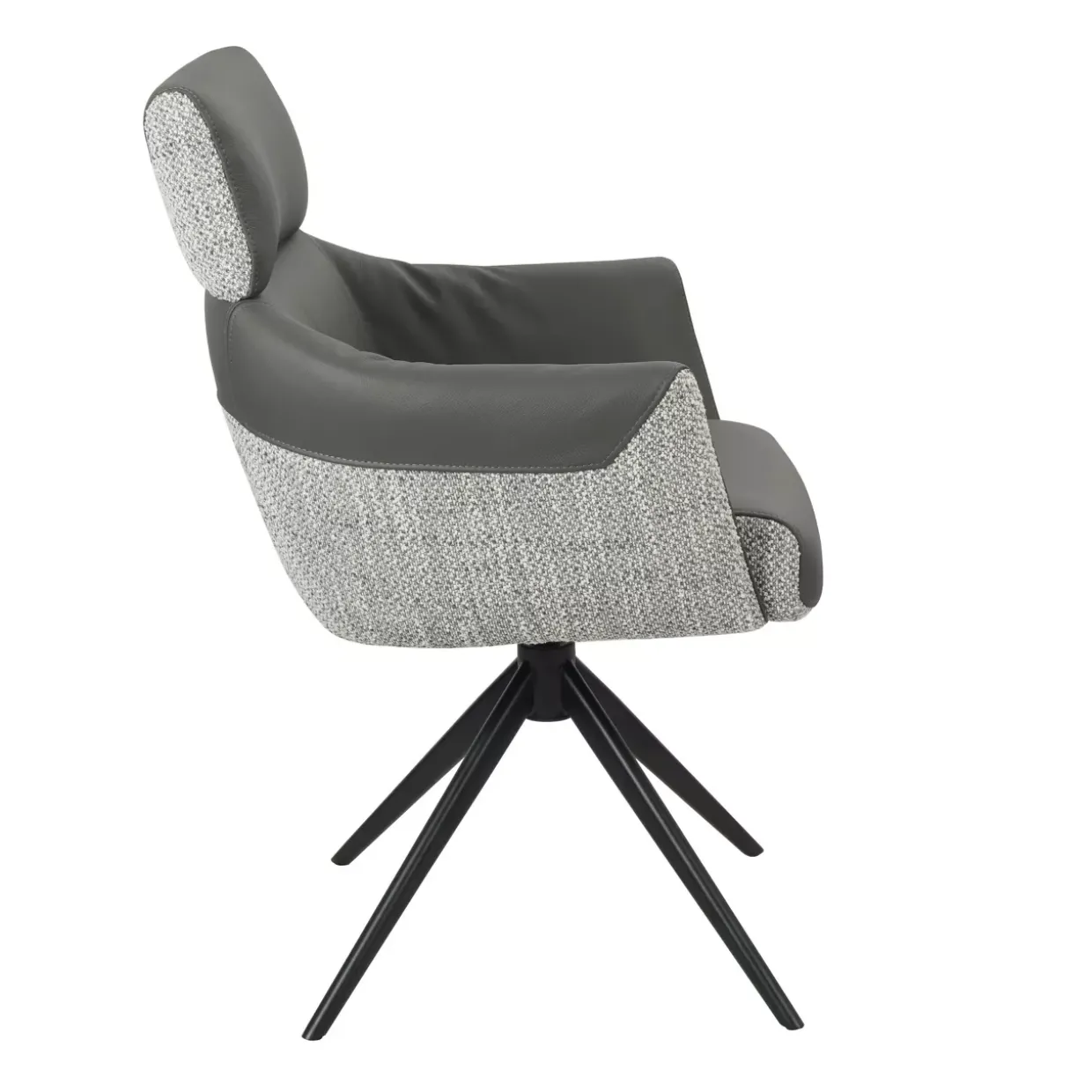 Der Fenra Armlehnstuhl vereint modernes Design mit funktionaler Eleganz. In einem zeitlosen Grau gehalten, fügt er sich nahtlos in verschiedene Einrichtungsstile ein und bietet eine stilvolle Ergänzung für jeden Raum. Die Kombination aus hochwertigem Leder und Stoff sorgt nicht nur für eine ansprechende Optik, sondern auch für hohen Sitzkomfort und Langlebigkeit.
