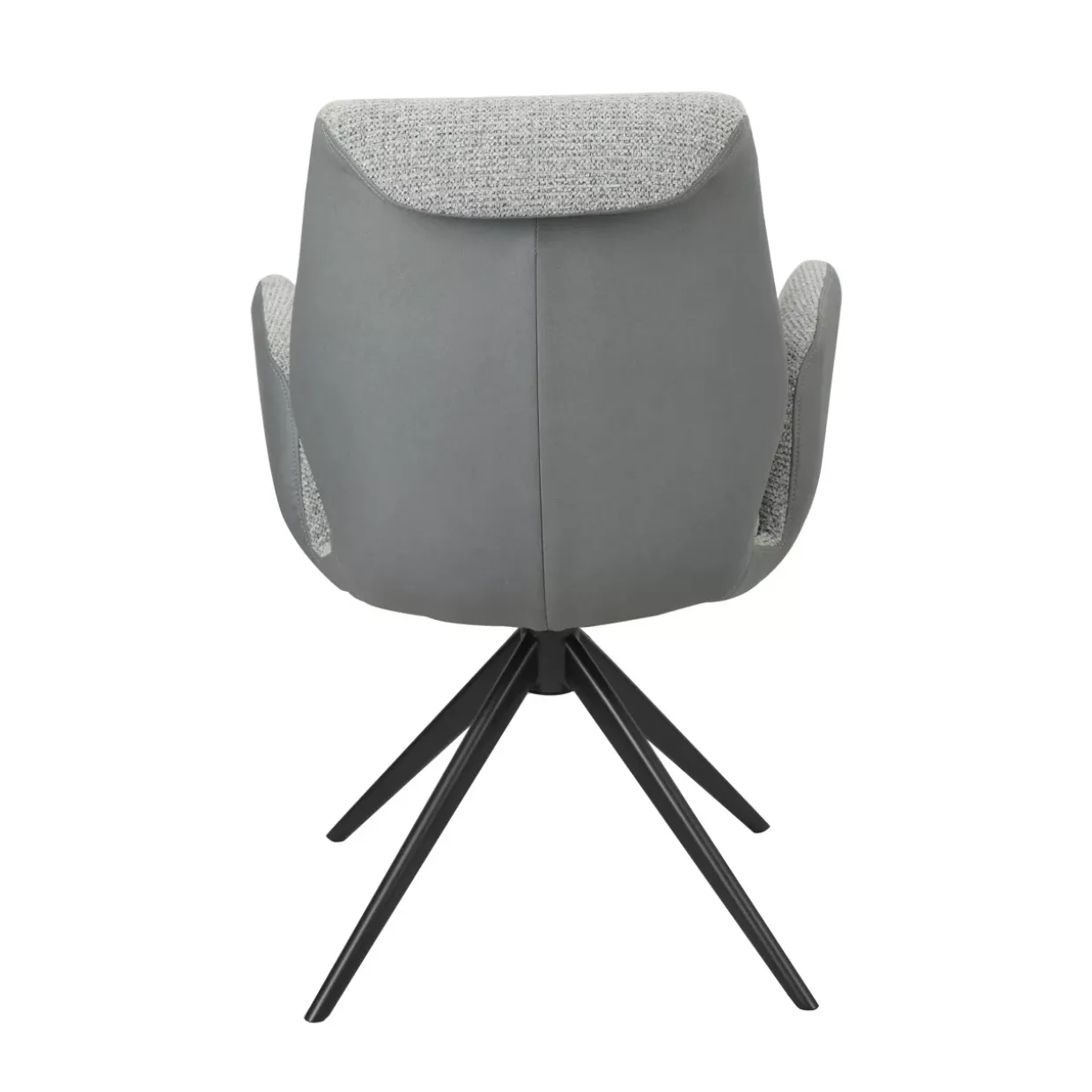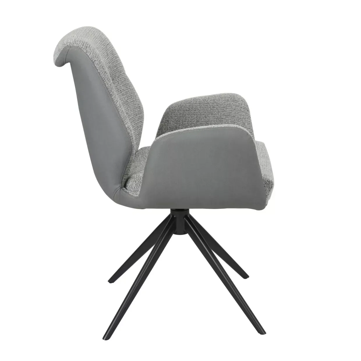 Ein Hauch von Modernität prägt den Fenra Armlehnstuhl, der mit seinem eleganten Design und der zeitlosen Farbe Grau beeindruckt. Gefertigt aus einer harmonischen Kombination von hochwertigem Leder und weichem Stoff, bietet dieser Stuhl eine ansprechende Haptik und Langlebigkeit. Die Materialwahl sorgt nicht nur für eine ästhetische Optik, sondern auch für einen hohen Sitzkomfort, der Entspannung und Stil vereint.Das 4-Fußgestell verleiht dem Stuhl eine stabile Basis, die Zuverlässigkeit und Balance garantiert. Durch die 360°-Schwenkfunktion wird der Armlehnstuhl zu einem flexiblen Begleiter im Alltag, der sich Ihren Bedürfnissen anpasst und Bewegungsfreiheit ermöglicht. Diese Funktion eröffnet vielseitige Einsatzmöglichkeiten, sei es im Wohnbereich, im Büro oder im Besprechungsraum.Der moderne Stil des Fenra Armlehnstuhls fügt sich nahtlos in verschiedene Einrichtungsstile ein und wird zu einem Highlight in jedem Raum. Seine klaren Linien und die dezente Farbgebung machen ihn zu einem Möbelstück, das zeitlose Eleganz ausstrahlt. Der Fenra Armlehnstuhl ist mehr als nur ein Sitzmöbel – er ist eine Einladung zum Verweilen und Genießen, die Raffinesse und Funktionalität in Einklang bringt.
