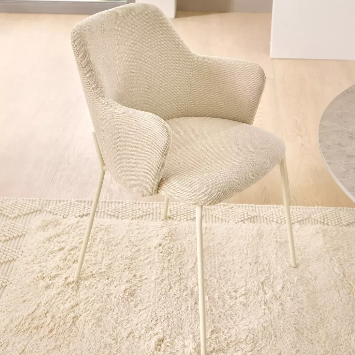 Stilvoll und konventionell präsentiert sich der Lissi Armlehnstuhl in einer harmonischen Kombination aus Strukturstoff in Beige und Creme. Das edle Polyestergewebe verleiht dem Stuhl nicht nur eine angenehme Haptik, sondern auch eine beeindruckende Langlebigkeit. Mit seinem soliden 4-Fußgestell aus Metall garantiert er Stabilität und eine moderne Optik, die sich nahtlos in verschiedene Raumkonzepte einfügt.