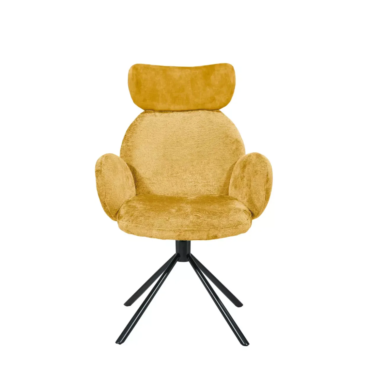 Ein Hauch von Luxus zieht mit dem Tulsa Armlehnstuhl in Ihr Zuhause ein. Die Kombination aus goldfarbenem und schwarz pulverbeschichtetem Metall verleiht dem Stuhl einen modernen Glamour-Look. Der edle Velourstoff der Sitzschale lädt zum Verweilen ein und bietet höchsten Komfort. Eine Besonderheit ist der 360° drehbare Sitz, der Ihnen Flexibilität und Bewegungsfreiraum gewährt.