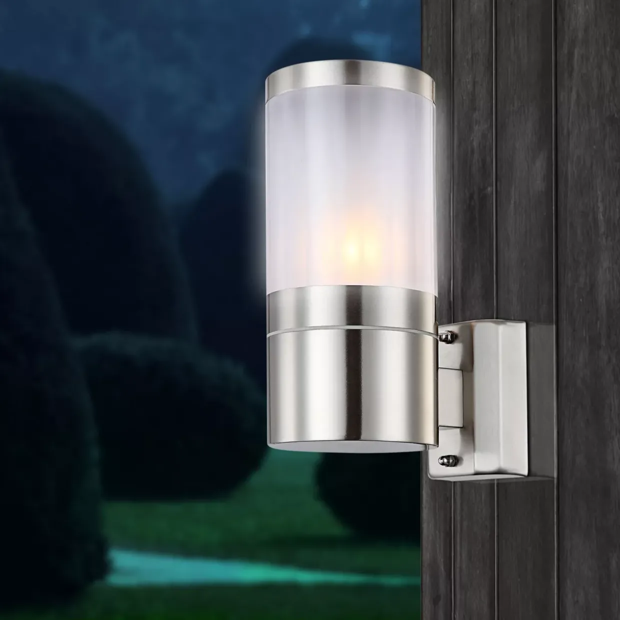 Außenleuchte Edelstahl silber glänzend, Kunststoff opal, Richtung Lichtschein: aufwärts, IP44, LxBxH: 102x155x240mm, AL: 155mm, exkl. 1x E27 60W 230V