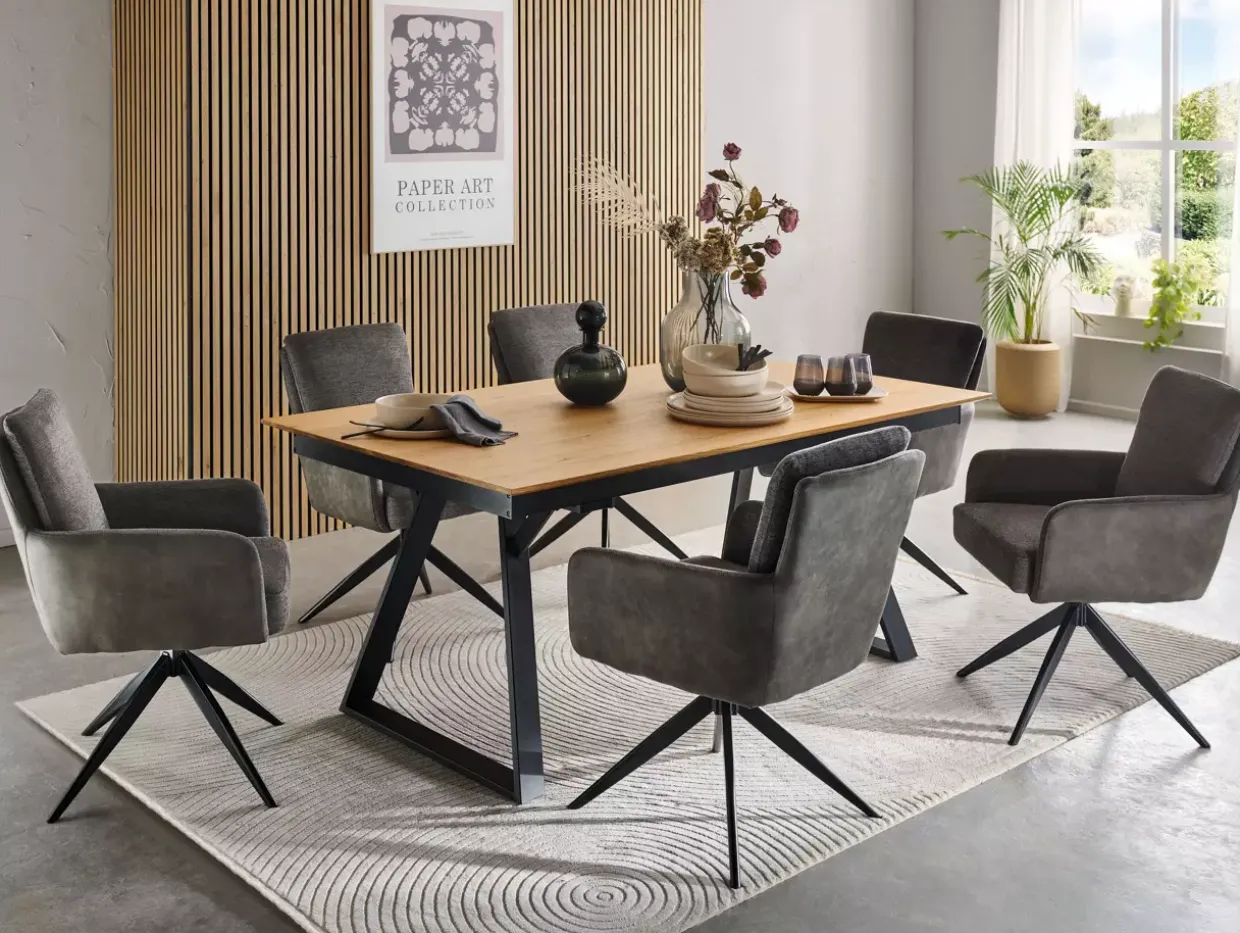 Ein Gestellauszug mit Komfort-Butterfly macht den Vasco Ausziehtisch zum flexiblen Begleiter in Ihrem Zuhause. Dieses Möbelstück vereint die zeitlose Eleganz von Holz mit der Robustheit von Metall und bietet eine perfekte Kombination aus Funktionalität und Ästhetik.