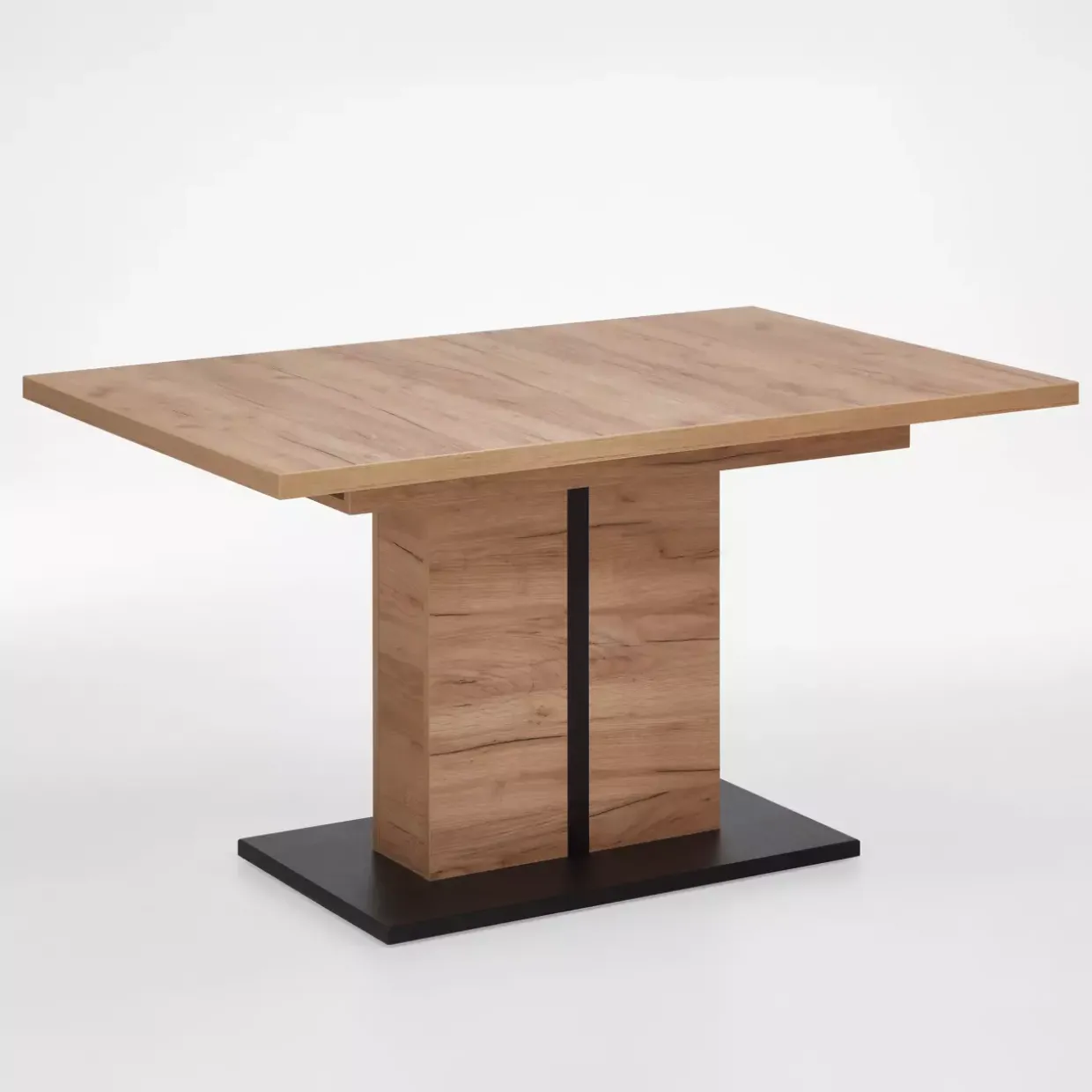 inkl. innenliegende Einlegeplatte 45cm Größe: 140-185x76x90cm Farbton: Gestell Dekor Artisan-Eiche mit Metallapplikation schwarz / Tischplatte Dekor Artisan-Eiche Material: Gestell Metall / Tischplatte Holzwerkstoff / Gestell Holzwerkstoff bestehend aus: 1 Ausziehtisch Stil: Modern Fußform: Säule Form: Tischplatte rechteckig Highlights