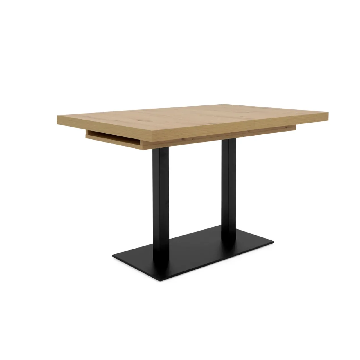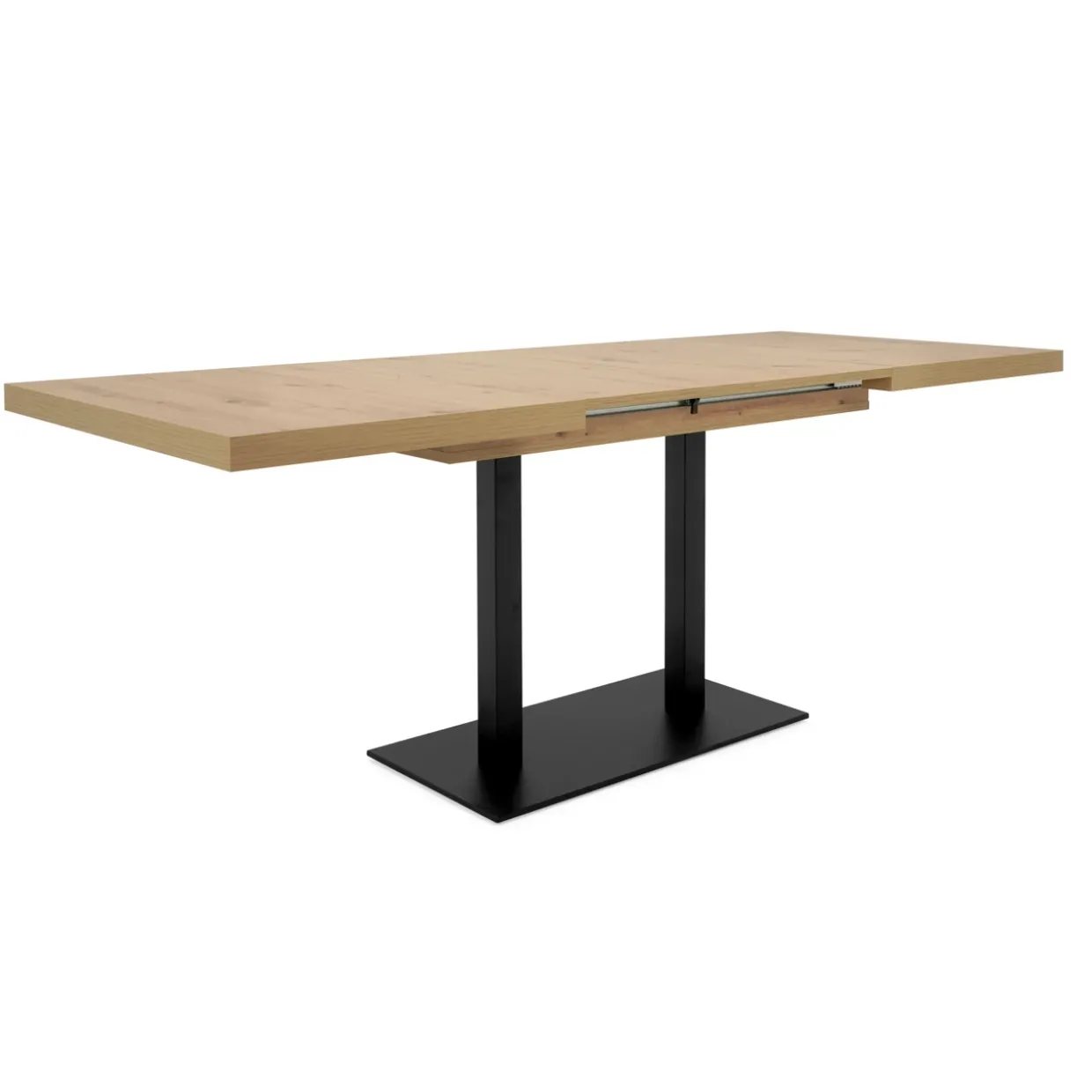 Quadrato, der elegante Auszugstisch, vereint modernes Design mit hoher Funktionalität. Mit seiner rechteckigen Form und der stilvollen Kombination aus schwarzem Metall und Holzwerkstoff in Artisan Oak Nachbildung bringt er zeitgemäße Eleganz in jeden Raum. Vielseitigkeit wird bei Quadrato großgeschrieben, denn der Tisch lässt sich bequem auf eine Länge von bis zu 200 cm ausziehen. So bietet er flexibel Platz für gesellige Abende oder größere Runden.