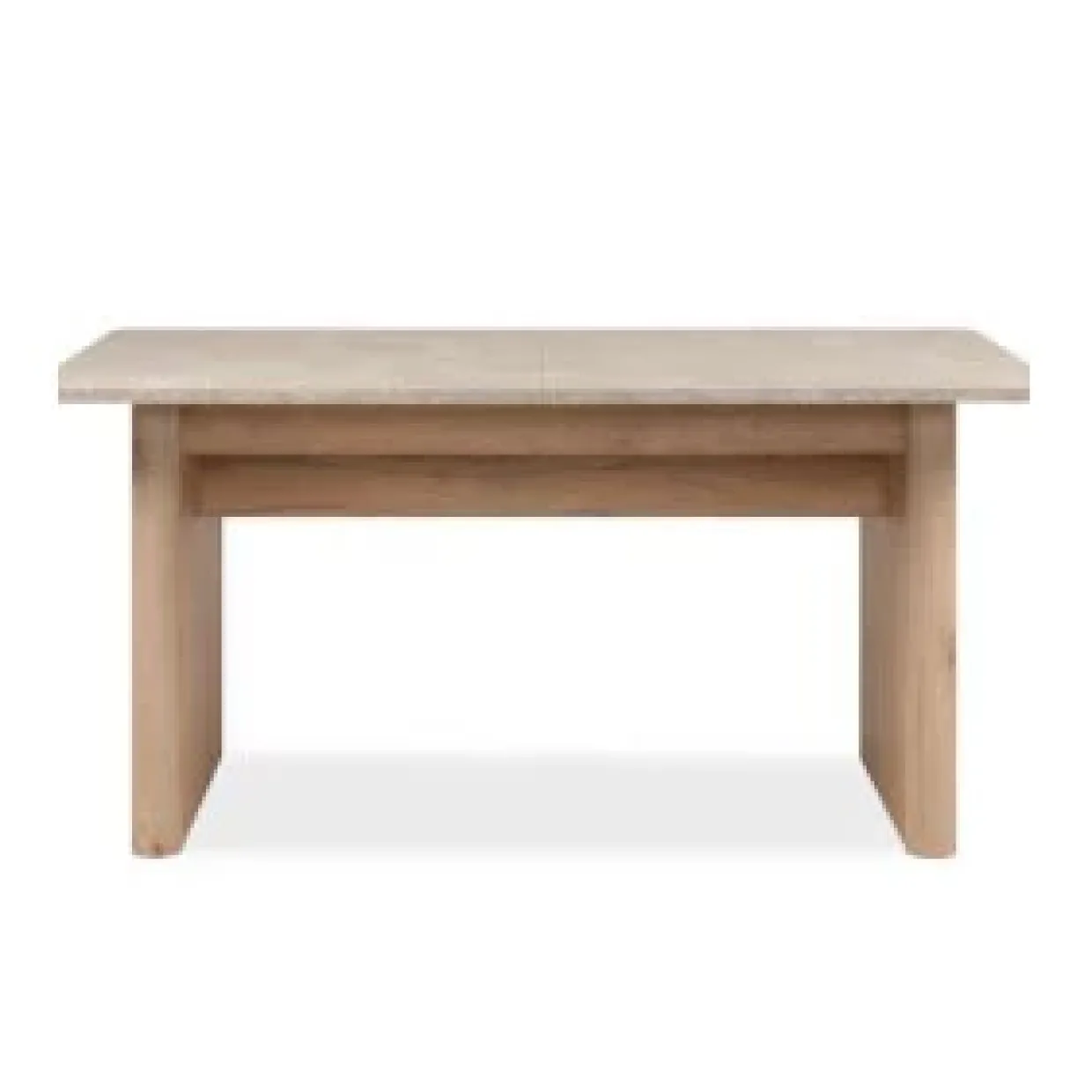 Sandsteinfarben erstrahlt der Auszugstisch Sai, ein wahres Schmuckstück im Scandi-Stil. Der Tisch vereint natürliche Materialien mit klaren Linien und schafft so eine Atmosphäre der Ruhe und Eleganz in Ihrem Zuhause. Stein als gewähltes Material verleiht ihm nicht nur Stabilität, sondern auch eine zeitlose Ästhetik, die in jedem Raum beeindruckt.