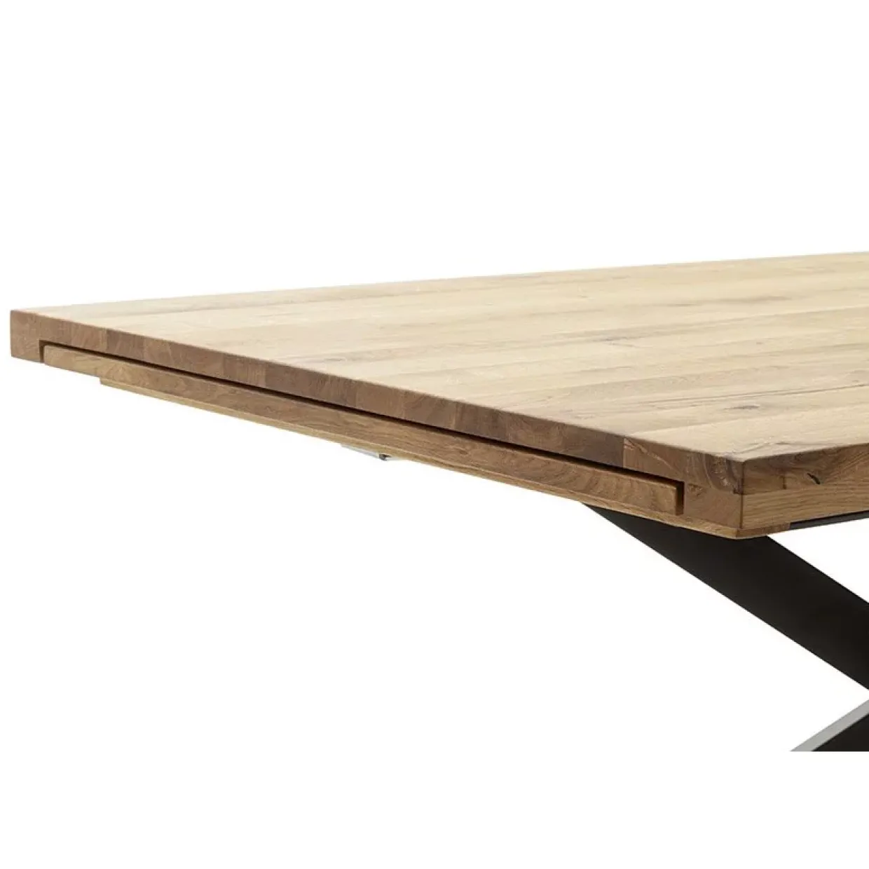 BARLETTA Auszugtisch 180 (280) cmDie authentische Schönheit der Wildeiche trifft auf die robuste Eleganz von Stahl in diesem modernen Esstisch. Mit seiner Kombination aus Holz und Metall verkörpert der Tisch eine zeitlose Ästhetik, die sowohl in klassische als auch in moderne Esszimmerumgebungen passt. Der Esstisch bietet nicht nur optische Vorzüge, sondern überzeugt auch mit seiner Funktionalität: Der praktische Synchronauszug ermöglicht ein müheloses Vergrößern der Tischfläche, sodass Sie jederzeit Platz für zusätzliche Gäste schaffen können.Der Tisch besticht durch eine geölte Oberfläche, die die natürliche Maserung der Wildeiche hervorhebt und für ein warmes und einladendes Ambiente sorgt. Das pulverbeschichtete Stahlgestell verleiht dem Tisch Stabilität und eine moderne Note. Das 4-Fußgestell bietet eine solide Basis und gewährleistet sicheren Stand.Ein weiterer Pluspunkt ist die FSC-Zertifizierung, die Ihnen die Gewissheit gibt, dass das Holz aus nachhaltig bewirtschafteten Wäldern stammt. Diese Eigenschaft macht den Tisch nicht nur zu einem ästhetischen, sondern auch zu einem verantwortungsbewussten Möbelstück. Entdecken Sie die Vielseitigkeit und den natürlichen Charme dieses Auszugtisches und gestalten Sie Ihr Esszimmer zu einem einladenden Treffpunkt für Familie und Freunde.