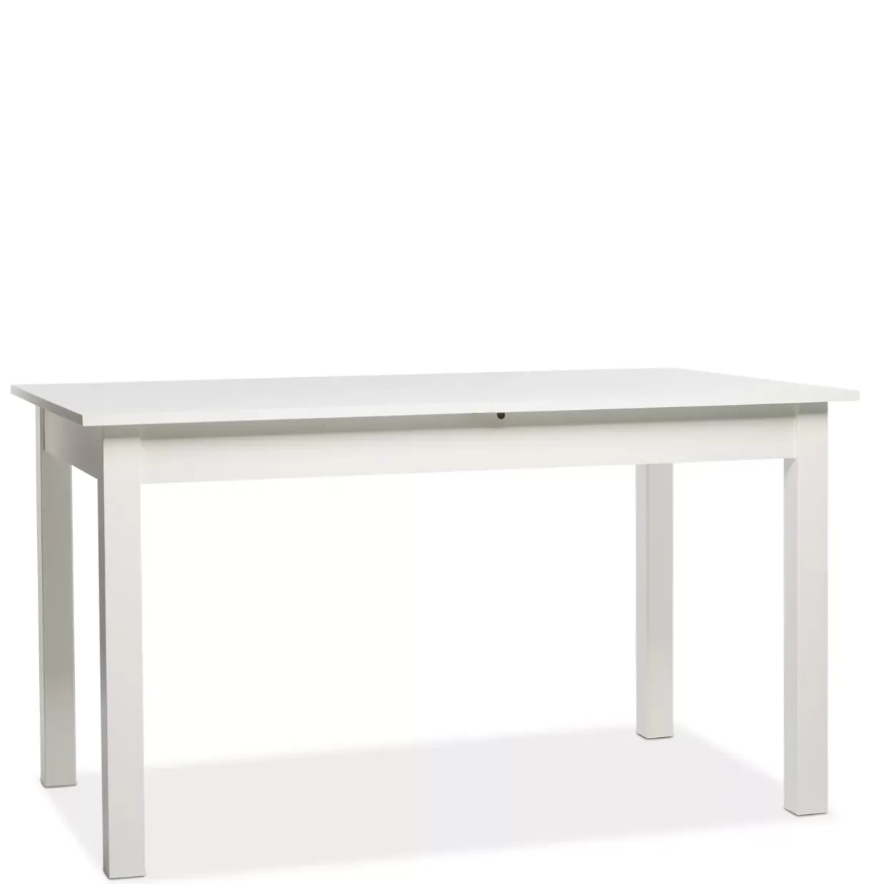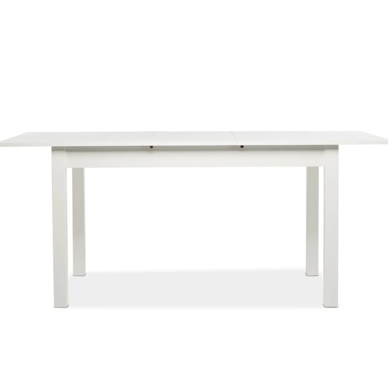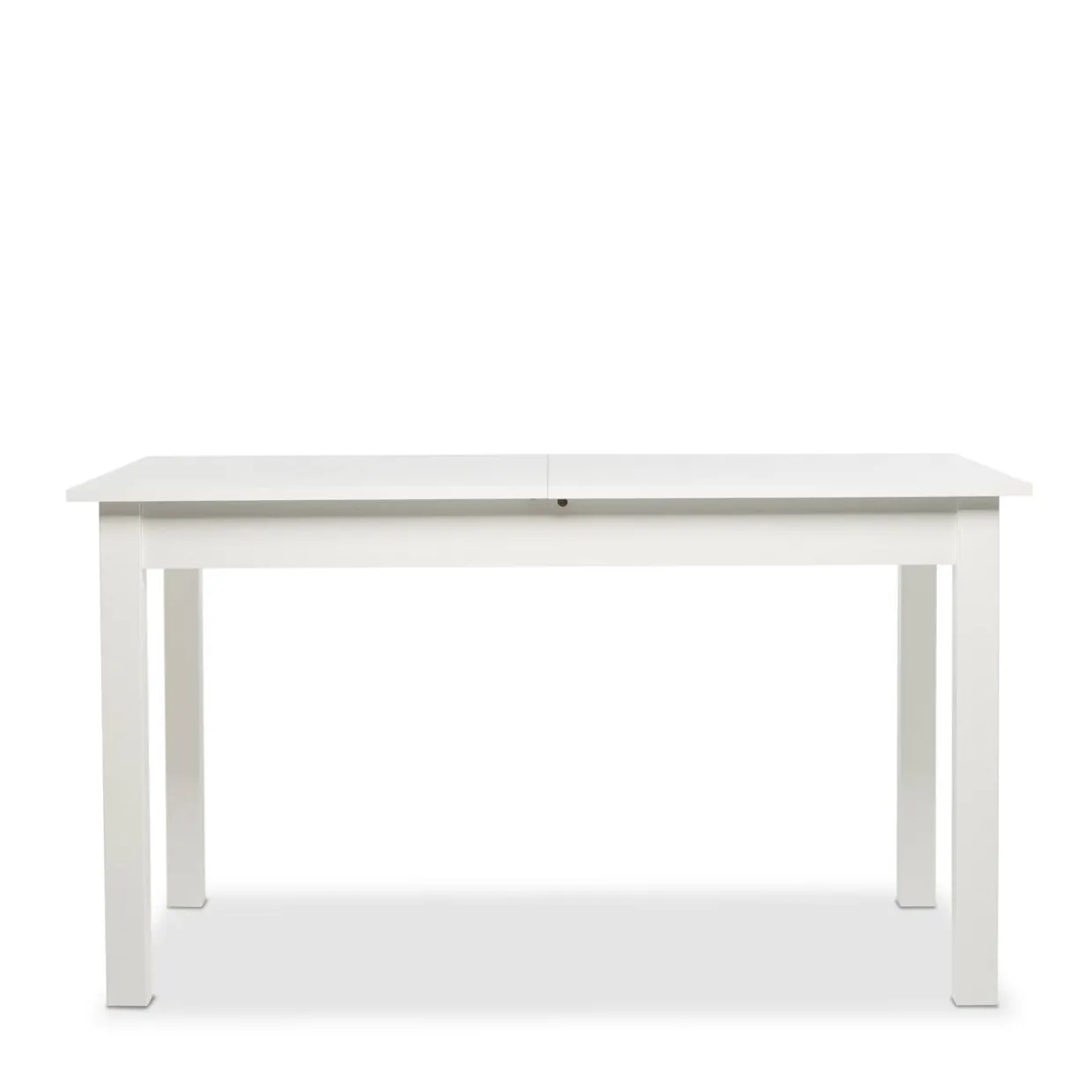 Der Tisch besticht durch seine elegante, weiße Oberfläche, die nicht nur zeitlos wirkt, sondern sich auch nahtlos in jede Einrichtung integriert. Die Konstruktion aus hochwertigem Holzwerkstoff garantiert Stabilität und Langlebigkeit, während das 4-Fußgestell für eine solide Standfestigkeit sorgt.