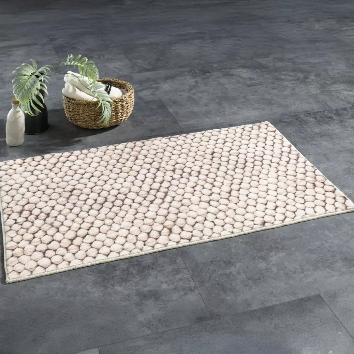 Eine rechteckige Form verleiht diesem Badteppich einen modernen Touch, der in jedes Badezimmerambiente passt. Die subtile greige Farbgebung harmoniert wunderbar mit einer Vielzahl von Einrichtungsstilen und sorgt ganzjährig für ein stilvolles Erscheinungsbild. Gefertigt aus hochwertigen Synthetikfasern, bietet dieser Badteppich nicht nur Komfort, sondern auch Langlebigkeit.