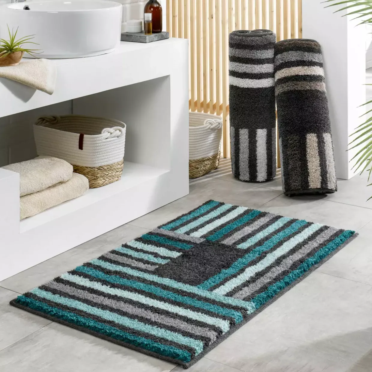 MIKADO Badteppich 60×100 cm grünDie rutschfeste Eigenschaft des Badteppichs MIKADO setzt Maßstäbe für Sicherheit und Komfort in Ihrem Badezimmer. In einem eleganten modernen Stil gehalten, fügt sich der Teppich in einem sanften Grünton harmonisch in jede Badezimmereinrichtung ein. Seine geometrischen Muster verleihen ihm einen Hauch von Raffinesse und Modernität. Hergestellt aus hochwertiger Synthetikfaser, bietet er eine langlebige und bruchfeste Struktur, die den täglichen Herausforderungen standhält.Ganz gleich, ob Sommer oder Winter, dieser Badteppich ist für den ganzjährigen Einsatz konzipiert und perfekt auf die Nutzung über Fußbodenheizungen abgestimmt. Das Textil mit dem Zertifikat Textiles Vertrauen – Ökotex Standard 100 unterstreicht das Engagement für Nachhaltigkeit und gesundheitliche Unbedenklichkeit.Bei der Pflege sollten Sie darauf achten, den Teppich nicht mit Weichspüler zu waschen. Eine Maschinenwäsche bei bis zu 40°C genügt, um die Textilqualität zu erhalten und die Farben strahlend zu lassen. Diese Pflegeleichtigkeit macht den Badteppich MIKADO zu einem zuverlässigen Begleiter in Ihrem Alltag, der sowohl Ästhetik als auch Funktionalität in Ihr Badezimmer bringt. Ein Produkt, das Ihr Wohlbefinden steigert und durch seine hochwertige Verarbeitung überzeugt.