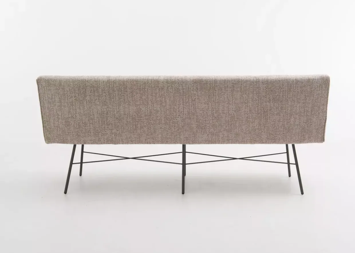 Vielfalt in der Materialkombination eröffnet zahlreiche Nutzungsmöglichkeiten für die Bank. Als Sitzgelegenheit im Eingangsbereich oder als dekoratives Element im Wohnzimmer – die Vielseitigkeit ist bemerkenswert. Der Stoffbezug in Coco Liver bietet eine angenehme Haptik und die Metallstruktur garantiert Langlebigkeit.