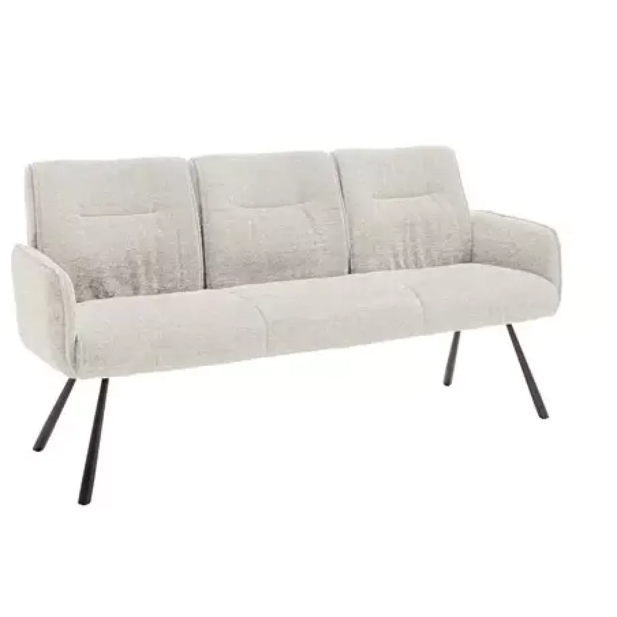 Erleben Sie Luxus in seiner reinsten Form mit der Delane Bank, die mit einem beweglichen Rücken ausgestattet ist. Dieses konventionelle Möbelstück kombiniert Ästhetik und Funktionalität, indem es sowohl Komfort als auch Stil in Ihr Zuhause bringt. Das Gestell in einem runden, konischen Design verleiht der Bank eine zeitlose Eleganz, während die Kombination aus Stoff und Metall für Stabilität und Langlebigkeit sorgt.Die hochwertige Polsterung der Bank besteht aus einem Taschenfederkern, der für einen besonders angenehmen Sitz sorgt und sich perfekt an Ihre Körperkonturen anpasst. Mit ihrer luxuriösen Komfortsitzfläche lädt die Bank zum Verweilen und Entspannen ein. Die Textilart aus Polyester unterstreicht die Strapazierfähigkeit und Pflegeleichtigkeit der Bank, ohne dabei auf Stil zu verzichten.Erhältlich in den Farben Strukturgewebe creme und schwarz matt, fügt sich das Möbelstück harmonisch in verschiedene Einrichtungsstile ein. Die 4-Fußgestell-Konstruktion sorgt für einen sicheren Stand und eine ansprechende Optik. Die Delane Bank mit Armlehnen ist die ideale Wahl für jene, die Wert auf Qualität und Komfort legen. Fügt sich elegant in Ihren Wohnraum ein und bietet einen Ort der Ruhe und Entspannung.