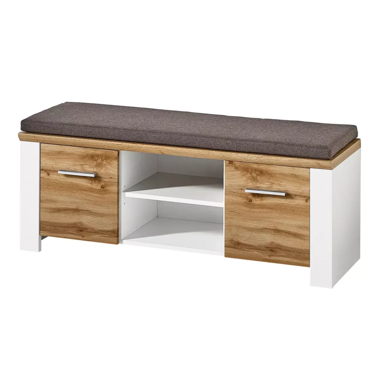 MATERIO6011 Bank + Kissen weiß matt/Eiche Altholz B/H/T ca. 121/50/39 cmDie lackierte Oberfläche der Materio Bank verleiht jedem Raum einen Hauch von Eleganz und Modernität. Die Kombination aus Eiche und weiß oder naturfarbenen Tönen sorgt für eine stilvolle und harmonische Atmosphäre. Holz als Material steht für Wärme und Beständigkeit, während der moderne Stil der Bank ein ästhetisches Highlight in jedem Wohnbereich darstellt.Ein weiteres bemerkenswertes Merkmal ist das bequeme Kissen, das den Sitzkomfort erheblich steigert. Die Materio Bank eignet sich nicht nur als Sitzgelegenheit, sondern auch als dekoratives Element, das sich nahtlos in verschiedene Einrichtungsstile einfügt. Ihre klare Linienführung und die hochwertige Verarbeitung machen sie zu einem zeitlosen Möbelstück.Praktikabilität trifft hier auf Design: Die Bank bietet nicht nur Platz zum Sitzen, sondern lässt sich auch hervorragend als Ablage nutzen, sei es im Flur, Wohnzimmer oder Schlafzimmer. Die Kombination der natürlichen Materialien mit der modernen Formgebung sorgt dafür, dass die Bank sowohl funktional als auch ästhetisch überzeugt.Wählen Sie die Materio Bank, wenn Sie Wert auf Qualität und Design legen. Sie wird Ihnen über Jahre hinweg Freude bereiten und Teil einer stilvoll eingerichteten Umgebung werden.