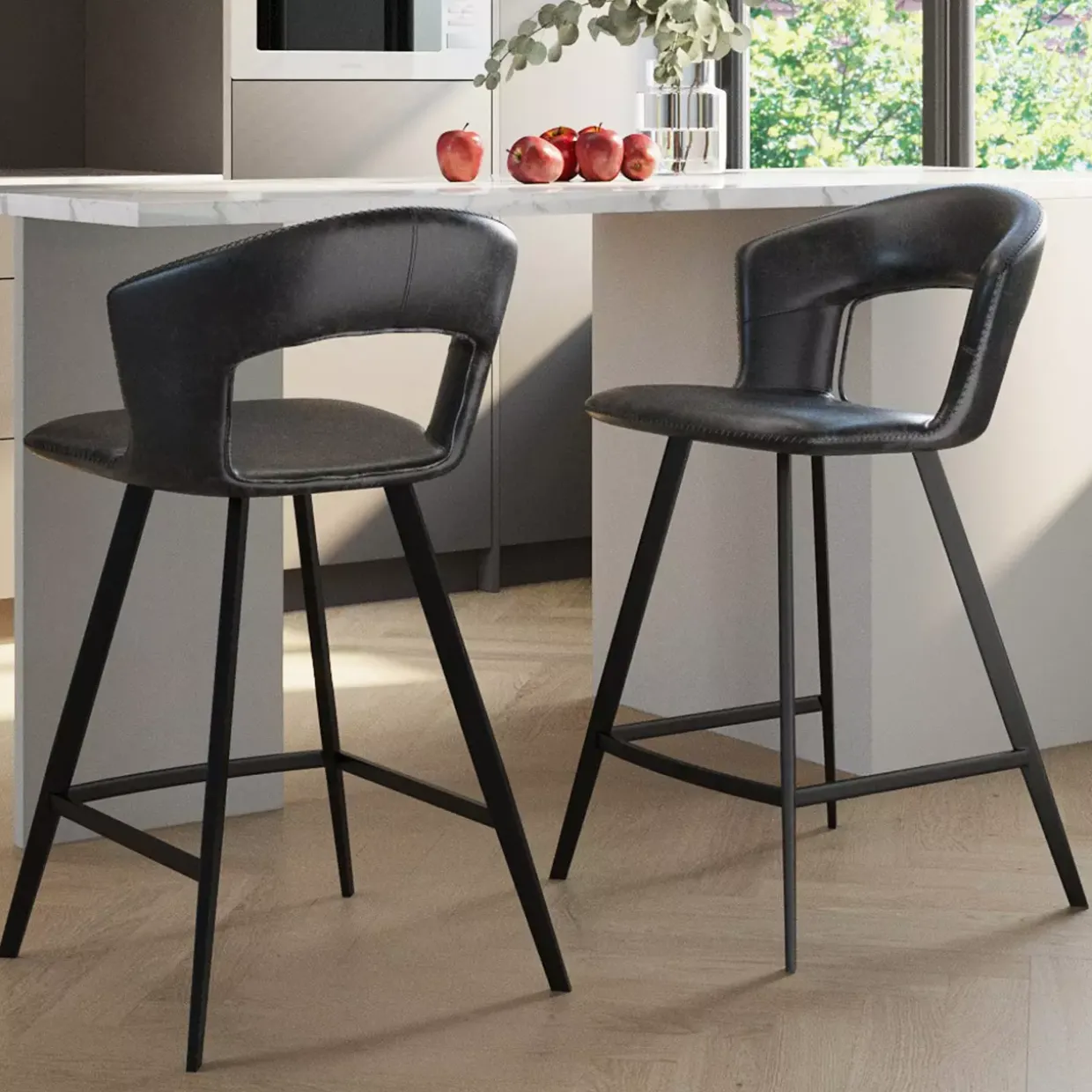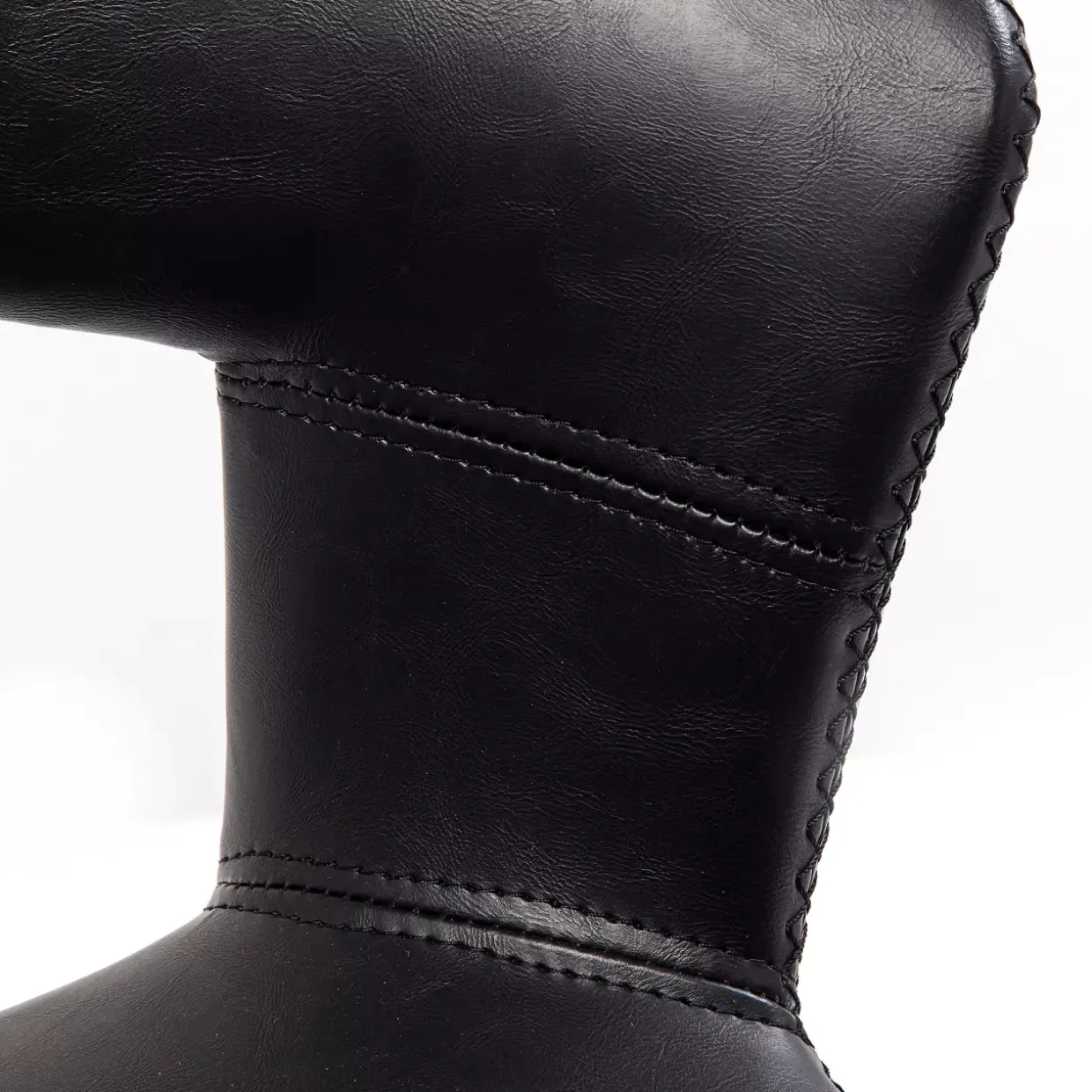 Das Zusammenspiel aus modernem Design und hochwertigem Material macht den Hocker zu einem vielseitigen Möbelstück, das sich nahtlos in verschiedenste Einrichtungsstile integrieren lässt. Ob in der Küche, am heimischen Tresen oder in einer stilvollen Bar, dieser Barhocker schafft eine Atmosphäre von Klasse und Komfort.