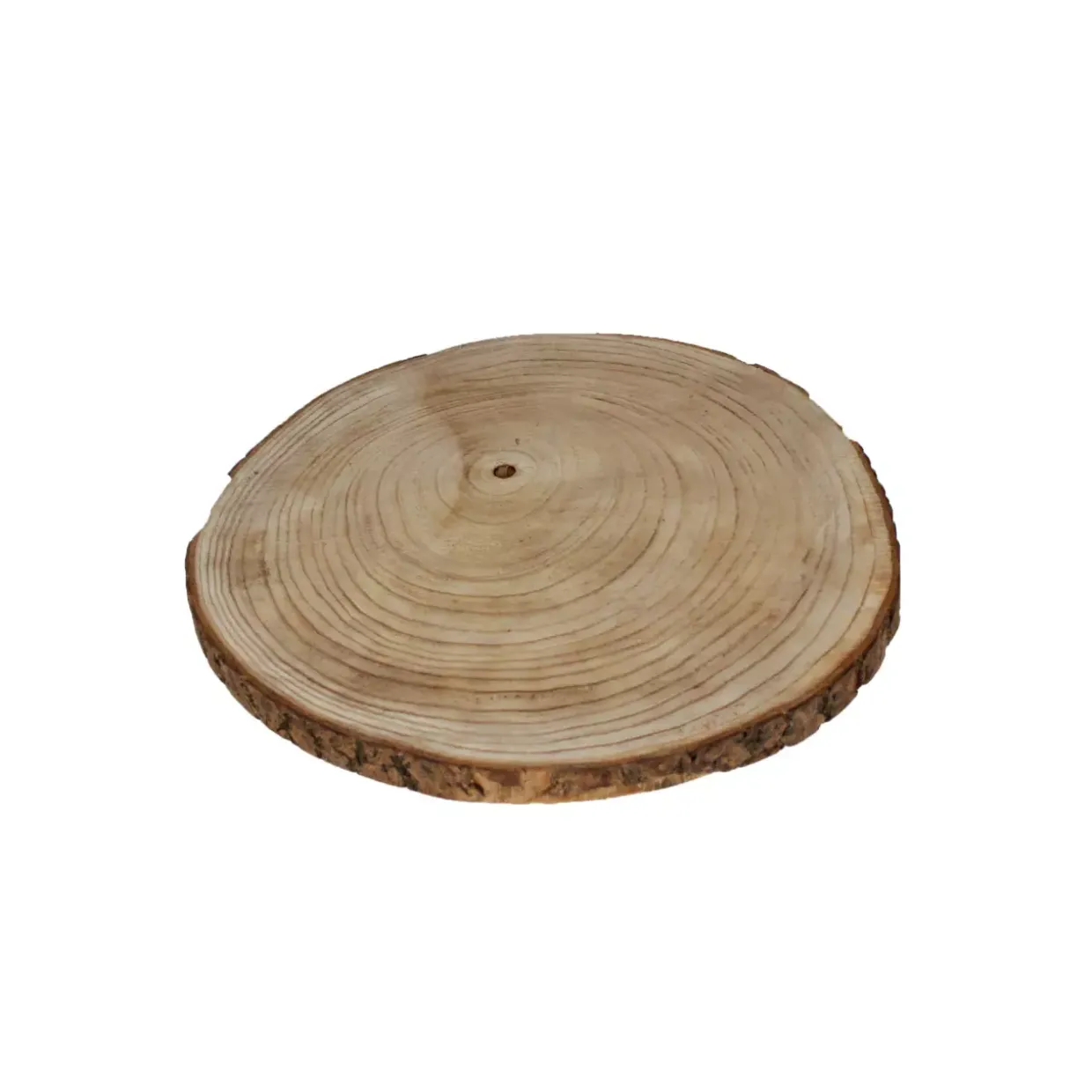 Aus hochwertigem Holz gefertigt, bietet die Baumscheibe nicht nur visuelle Anziehungskraft, sondern auch Robustheit und Langlebigkeit. Die natürliche Rinde, die die Scheibe umgibt, unterstreicht den organischen Charakter und bringt ein Stück Natur direkt in Ihr Zuhause.
