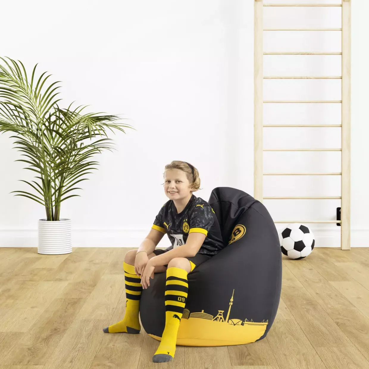 Ein sportliches Design, ergänzt durch ein Lizenz-Motiv, macht diesen Sitzsack zu einem idealen Begleiter für Fußballfans, die ein stilvolles Wohnaccessoire suchen. Der Beanbag XL ist nicht nur ein Blickfang, sondern auch eine komfortable Sitzgelegenheit, die sich harmonisch in verschiedene Wohnkonzepte einfügt.