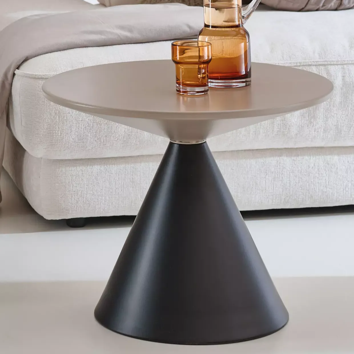 Mit einem Durchmesser von 60 Zentimetern bietet dieser Beistelltisch ausreichend Platz für Ihre Lieblingsbücher, eine Tasse Tee oder dekorative Accessoires. Die sorgfältig ausgewählte Metallart sorgt dafür, dass der Tisch langlebig und pflegeleicht ist, was ihn zu einem praktischen Begleiter im Alltag macht. Die Kombination aus Form und Funktion macht ihn zu einem Highlight in jedem Raum, sei es im Wohnzimmer, Schlafzimmer oder Büro.