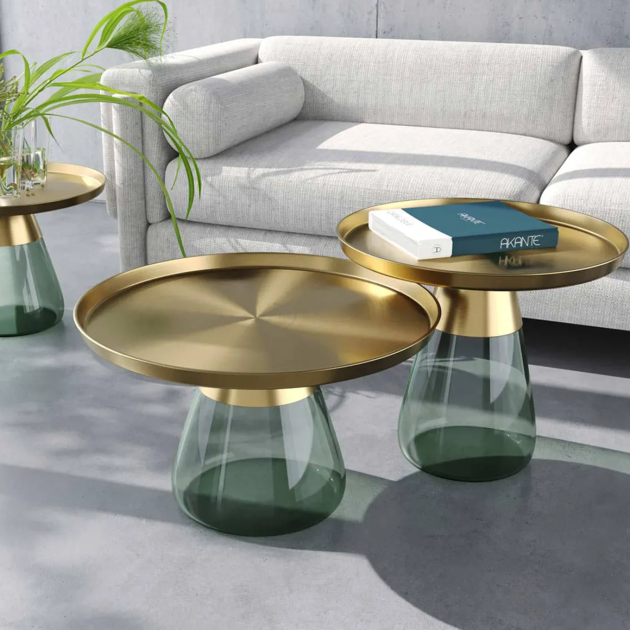 Ein Hauch von Retro-Charme zieht mit dem Drop Beistelltisch in Ihr Zuhause ein. Die faszinierende Kombination aus Glas in edlem Grün und bronzefarbenem Stahl verleiht dem Tisch eine einzigartige Ausstrahlung. Gefertigt aus hochwertigem Glas und stabilem Metall, vereint er Stil und Funktionalität auf harmonische Weise.