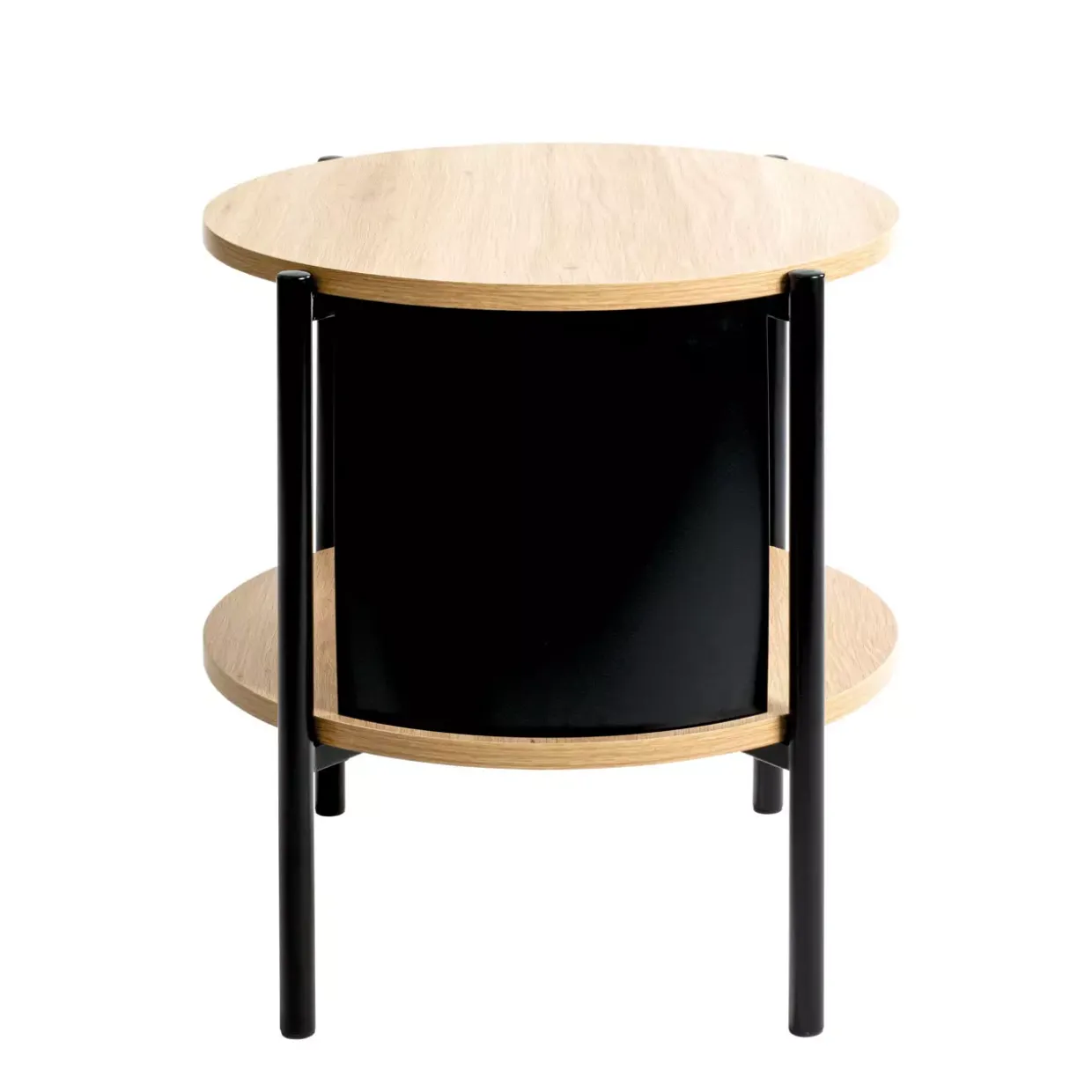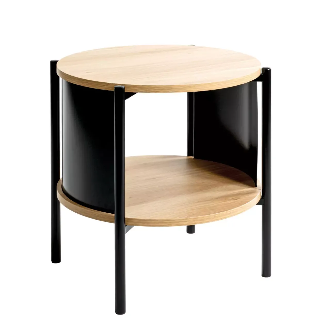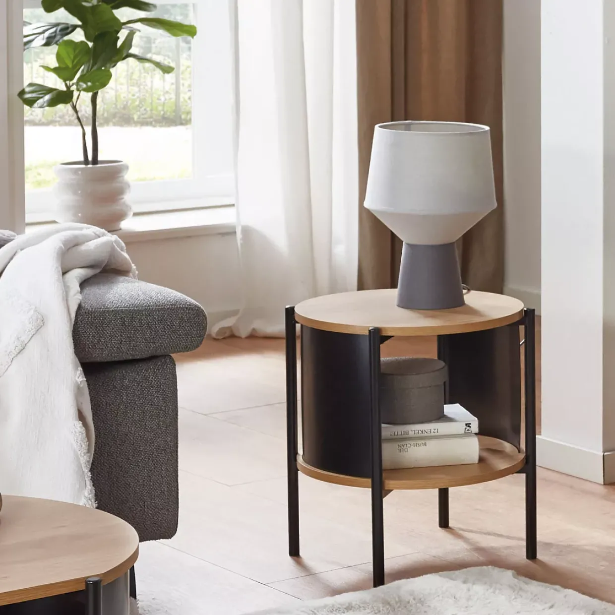 Eiche in Kombination mit schwarzem Stahl verleiht diesem Beistelltisch seinen charakteristischen Loft-Stil. Diese elegante Mischung aus natürlichen und industriellen Elementen macht ihn zu einem vielseitigen Möbelstück, das in verschiedenen Einrichtungsstilen harmoniert. Der Durchmesser von 44 cm bietet eine ideale Größe, um als praktischer Ablageort neben einem Sofa oder Sessel zu dienen, ohne dabei zu viel Platz einzunehmen.