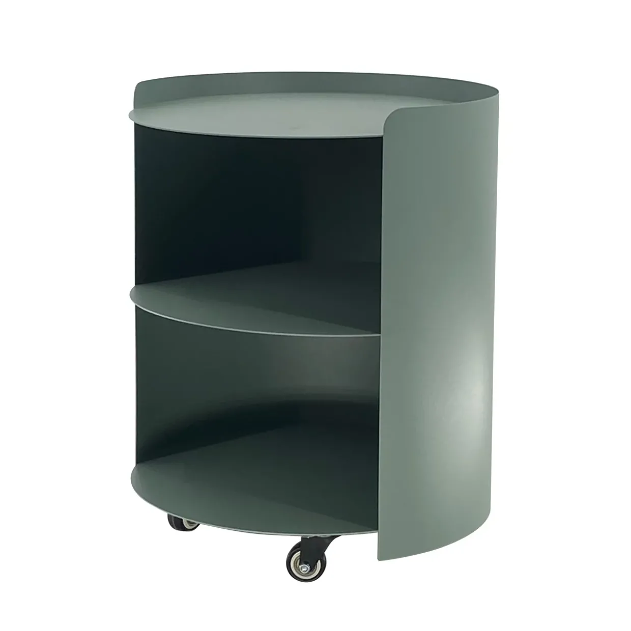 Salbei; Beistelltisch Durchmesser: 37,30 x 46,60 cm; Stahl mit Pulverbeschichtung, Stärke 1,50/1,00 mm, 4 schwarze Rollen; Farbe Salbei (DB-022)