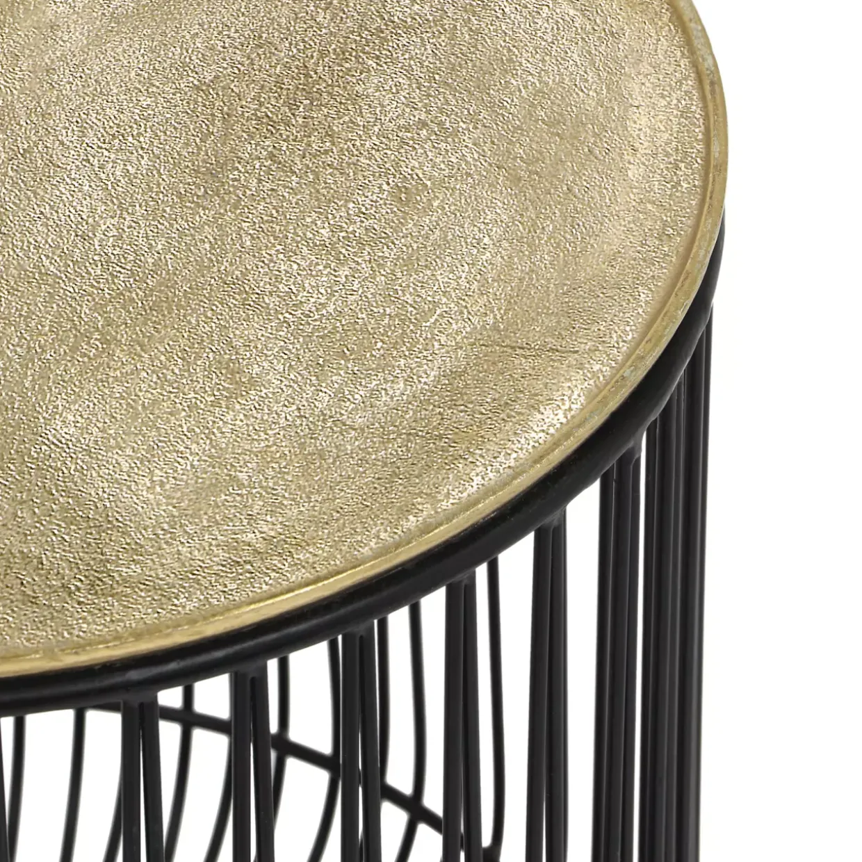 Schwarz-goldene Eleganz trifft modernen Stil. Ein Beistelltisch aus Aluminium, der sowohl durch seine zeitlose Farbe als auch durch sein minimalistisches Design besticht. Der Tisch fügt sich nahtlos in jedes ganzjährig nutzbare Interieur ein und bietet eine stilvolle Ergänzung für Ihr Zuhause.