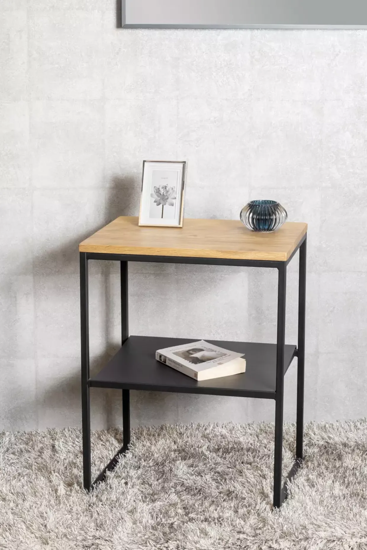 Die rechteckige Form des Sacramento 5 Beistelltisches verleiht jedem Raum eine klare Struktur und moderne Eleganz. In der Kombination aus edlem Schwarz und warmem Eichenton harmoniert er perfekt mit unterschiedlichen Einrichtungsstilen. Die flachrohrförmigen Füße aus robustem Metall sorgen für Stabilität und unterstreichen das zeitgenössische Design.