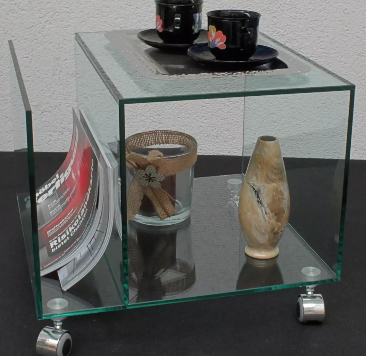 Die Materialwahl hebt diesen Rollcontainer hervor. Glas sorgt für eine transparente Leichtigkeit, während Kunststoff Robustheit und Flexibilität bietet. Metallkomponenten verleihen dem Ganzen Stabilität und Langlebigkeit. Diese harmonische Materialmischung garantiert, dass der Rollcontainer sowohl funktional als auch optisch ansprechend ist.