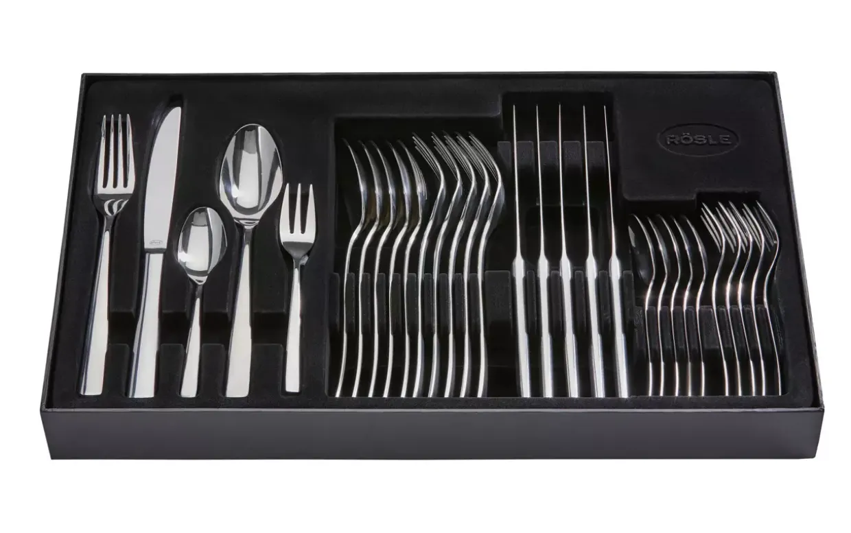 Eleganz und Funktionalität vereinen sich in dieser Kollektion zu einem harmonischen Gesamtbild, das jeden gedeckten Tisch aufwertet. Die 30 Teile bieten ausreichend Besteck für ein ausgedehntes Dinner mit Familie und Freunden. Tauchen Sie ein in die Welt der eleganten Tischkultur und lassen Sie sich von der Qualität und dem Design inspirieren.