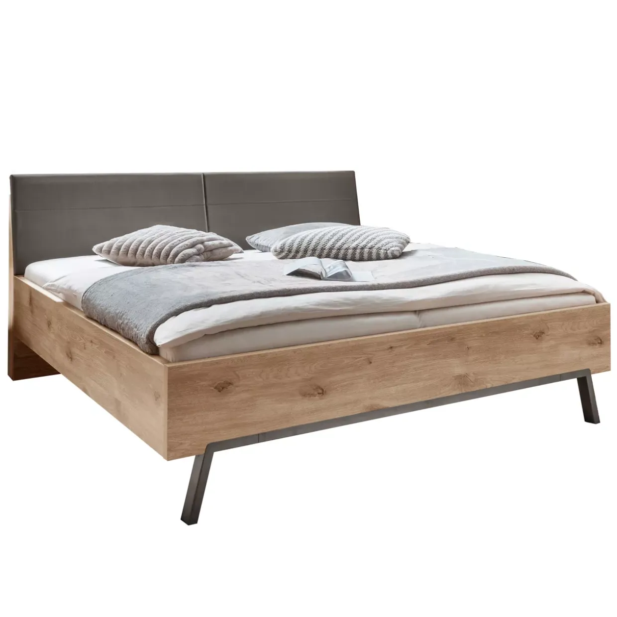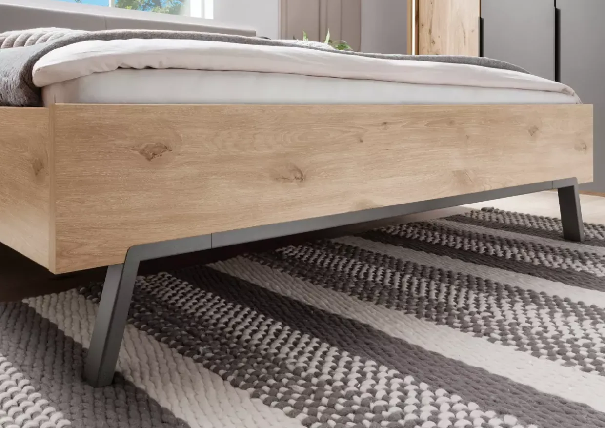 Die Farbpalette aus Nordic-Eiche-Nachbildung, Schiefer und Havanna spiegelt die moderne Ästhetik wider und fügt sich nahtlos in verschiedene Einrichtungsstile ein. Ob im Schlaf- oder Gästezimmer, das Bett bereichert den Raum mit seiner zeitgemäßen Eleganz.