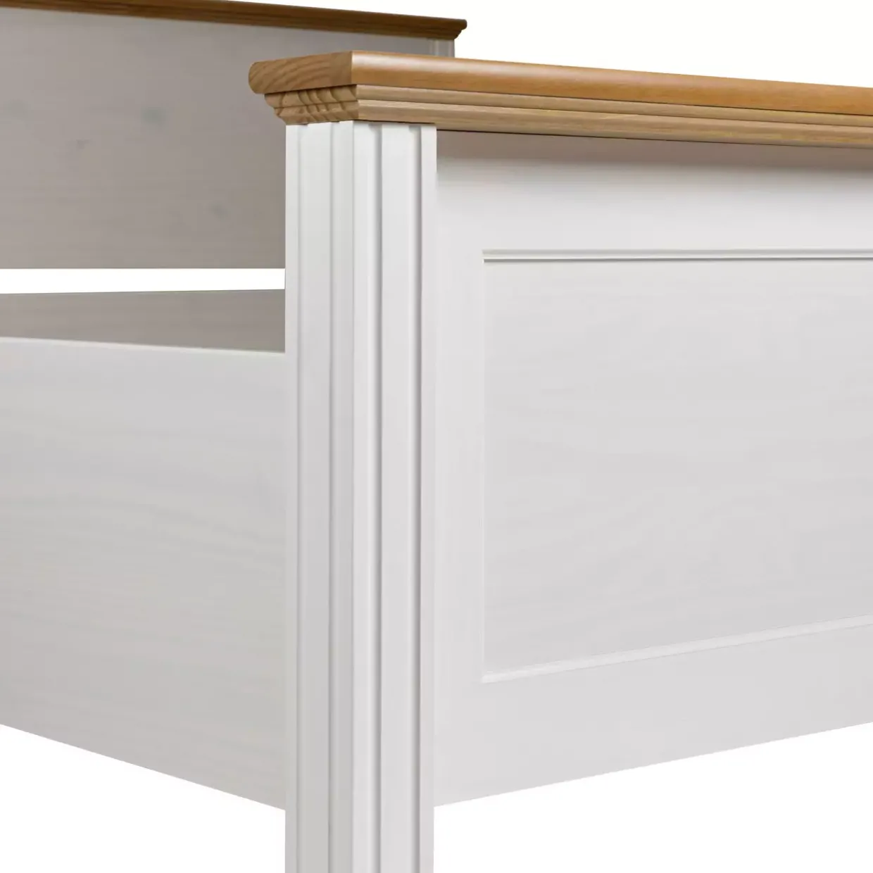 Das Maluno Bettgestell ist nicht nur ein Möbelstück, sondern ein Ruhepol in Ihrem Schlafzimmer. Der sanfte Einfluss des Cottage-Stils wird durch feine Details und eine harmonische Formgebung unterstrichen. Ästhetik und Zweckmäßigkeit gehen hier Hand in Hand, um Ihnen ein Schlafumfeld zu bieten, das sowohl visuell als auch funktional überzeugt.