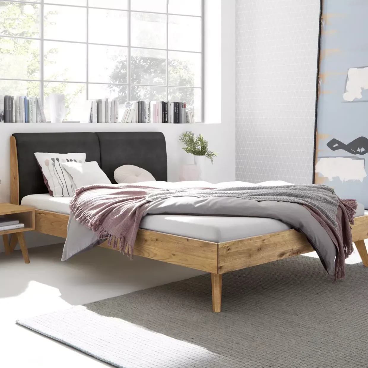 Ein Hauch von Moderne trifft auf natürliche Eleganz: Das Bett Simone 20 verbindet die zeitgemäße Ästhetik mit der warmen Ausstrahlung der Wildeiche. Natürliche Holzmaserungen der Wildeiche sorgen für ein einzigartiges Ambiente in jedem Schlafzimmer und bringen die Natur direkt in Ihr Zuhause. Die Kombination aus Holz und Stoff verleiht diesem Möbelstück einen besonderen Charme, der sowohl stilvoll als auch einladend wirkt.