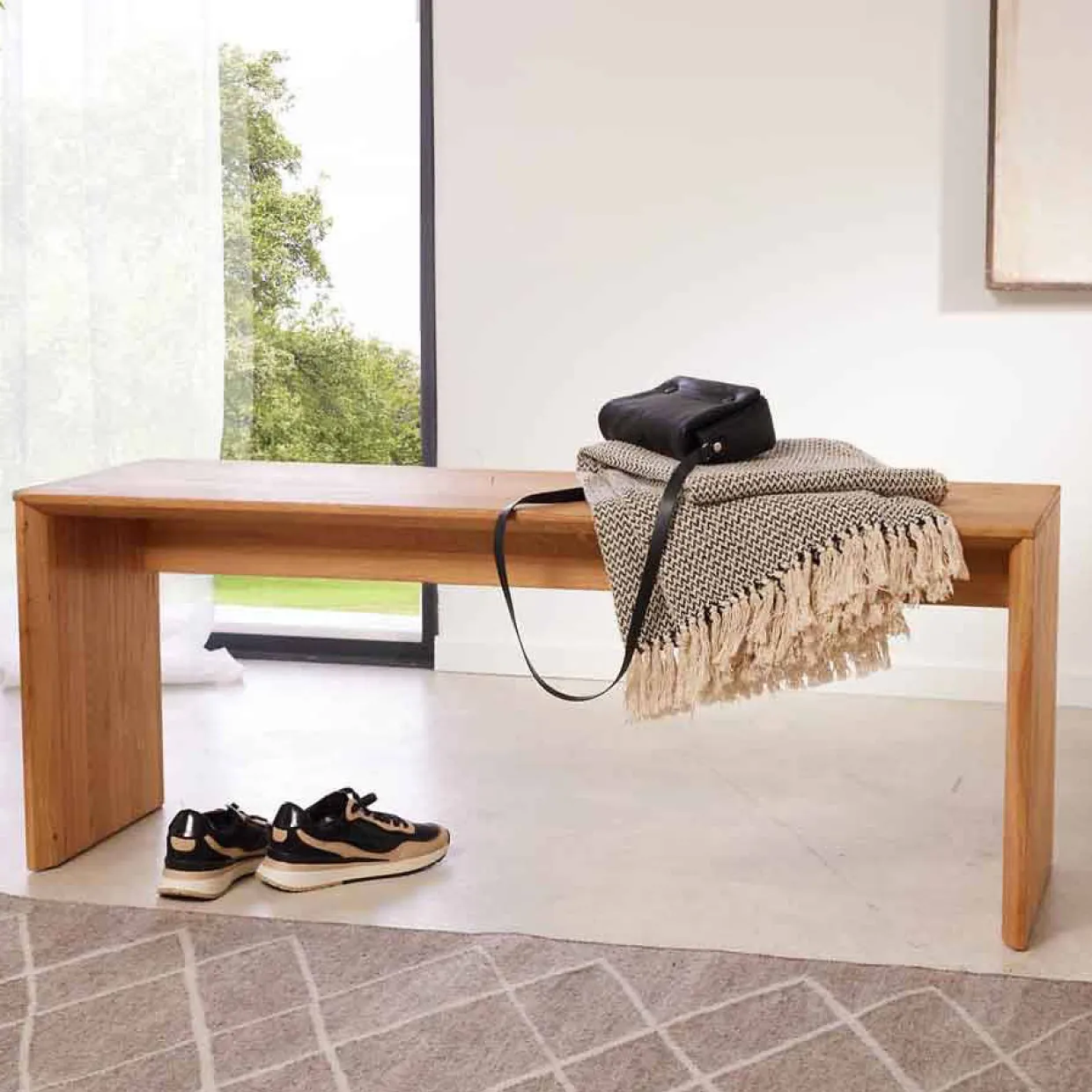Kernbuche massiv verleiht der Bettbank Onema eine natürliche und warme Ausstrahlung. Die charakteristischen Maserungen und Farbnuancen der Kernbuche machen jedes Stück zu einem Unikat und bringen ein Stück Natur in Ihr Zuhause. Das Holz, geölt für eine besonders angenehme Haptik und langanhaltenden Schutz, bewahrt die natürliche Schönheit und Struktur der Holzoberfläche.Die Bettbank fügt sich nahtlos in eine Vielzahl von Einrichtungsstilen ein und dient als vielseitiges Beimöbel, das sowohl funktional als auch ästhetisch überzeugt. In einem Schlafzimmer platziert, bietet sie nützlichen Stauraum für Bettwäsche oder Kissen. Aber auch in einem Flur oder Wohnbereich kann sie als stilvolle Sitzgelegenheit oder Ablagefläche genutzt werden.Holz als Material bringt nicht nur eine warme Atmosphäre, sondern auch Langlebigkeit und Robustheit mit sich. Die geölte Oberfläche unterstreicht die natürliche Schönheit des Holzes und schützt es gleichzeitig vor äußeren Einflüssen. Dies sorgt dafür, dass die Bettbank auch bei täglicher Nutzung ihre Eleganz behält.Mit ihrem zeitlosen Design und der hochwertigen Verarbeitung ist die Bettbank Onema eine Bereicherung für jeden Raum, der Wert auf natürliche Materialien und eine stilvolle Einrichtung legt. Entdecken Sie die harmonische Verbindung von Funktionalität und Ästhetik in einem Möbelstück.