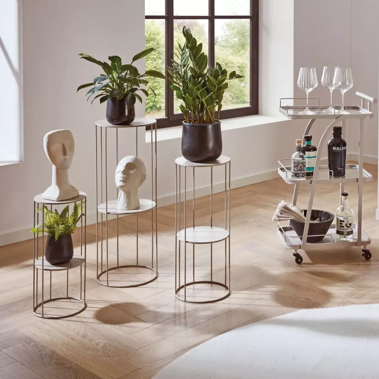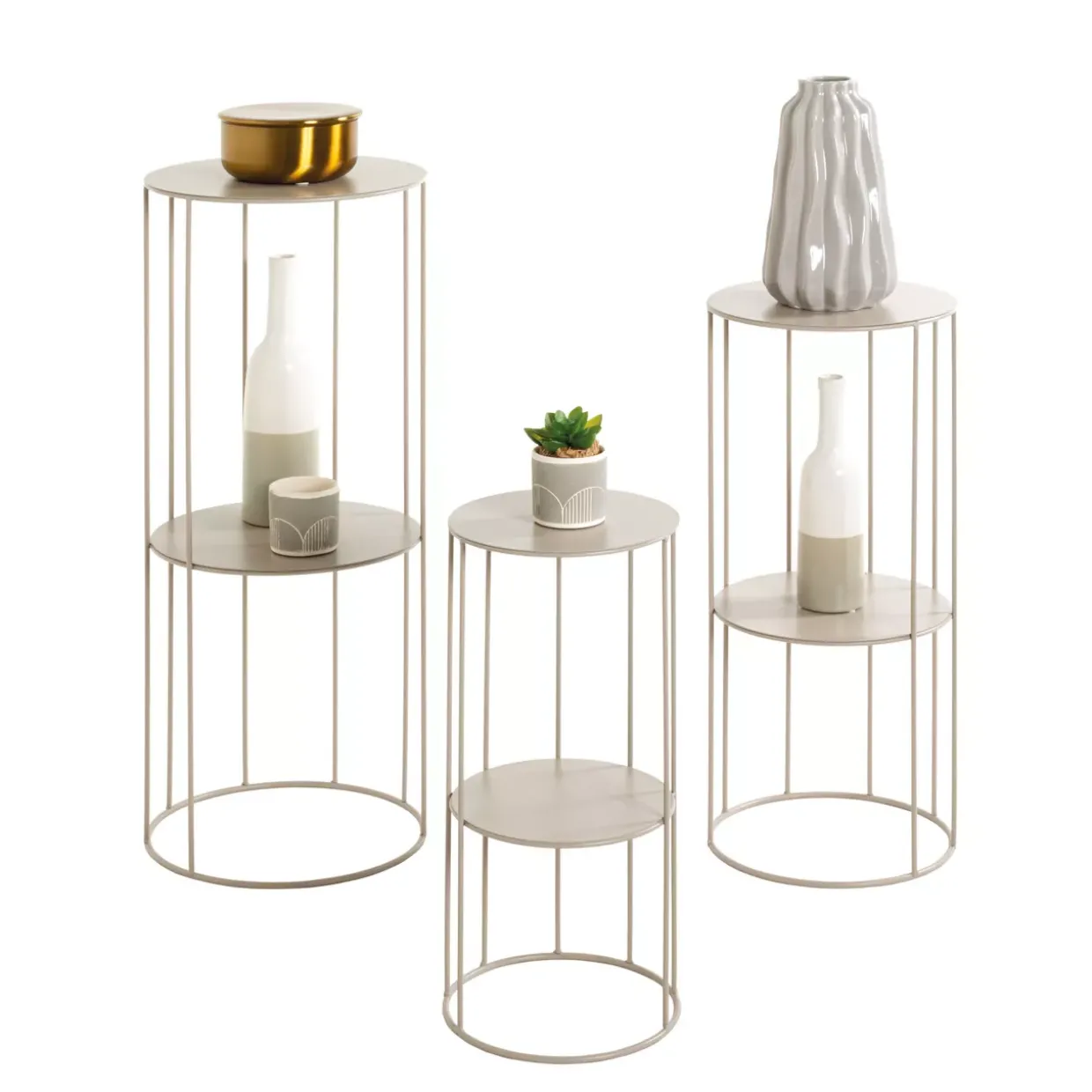 Kaschmirgrau verleiht dieser Blumensäule eine zeitlose Eleganz, die sowohl in modernen als auch in klassischen Interieurs harmonisch wirkt. Die Kombination aus Stil und Funktionalität zeigt sich eindrucksvoll in diesem Beistelltisch-Set, das Ihren Wohnraum um eine ästhetische Note bereichert.