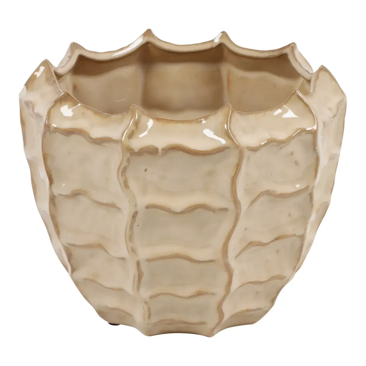 Ein Hauch von Eleganz umgibt den Blumentopf Eloise XL in der sanften Cremefarbe. Gefertigt aus hochwertiger Keramik, vereint er Beständigkeit und zeitlose Schönheit und bietet eine stabile Basis für Ihre liebsten Pflanzen. In seiner Größe konzipiert, um auch größere Pflanzen stilvoll zu beherbergen, fügt sich dieser Blumentopf harmonisch in jede Umgebung ein. Der konventionelle Stil des Eloise XL passt sich mühelos verschiedenen Einrichtungsstilen an und bringt eine dezente, aber wirkungsvolle Note in Ihr Zuhause oder Ihren Garten.Keramik als Material bietet nicht nur eine edle Optik, sondern auch praktische Vorteile: Es ist langlebig und pflegeleicht, ideal für den täglichen Gebrauch. Der cremige Farbton des Blumentopfs lässt die Farben der Pflanzen besonders strahlen und schafft eine beruhigende Atmosphäre.Verschiedenste Pflanzen finden in diesem Blumentopf einen stilvollen Platz. Ob im Wohnzimmer, auf der Terrasse oder im Wintergarten – der Eloise XL ist vielseitig einsetzbar und verleiht jedem Raum eine angenehme Ausstrahlung. Mit dem Blumentopf Eloise XL gestalten Sie Ihre Umgebung nicht nur schöner, sondern bringen auch ein Stück Natur in Ihren Alltag. So wird jede Pflanze zu einem Highlight in Ihrem persönlichen Grünbereich.