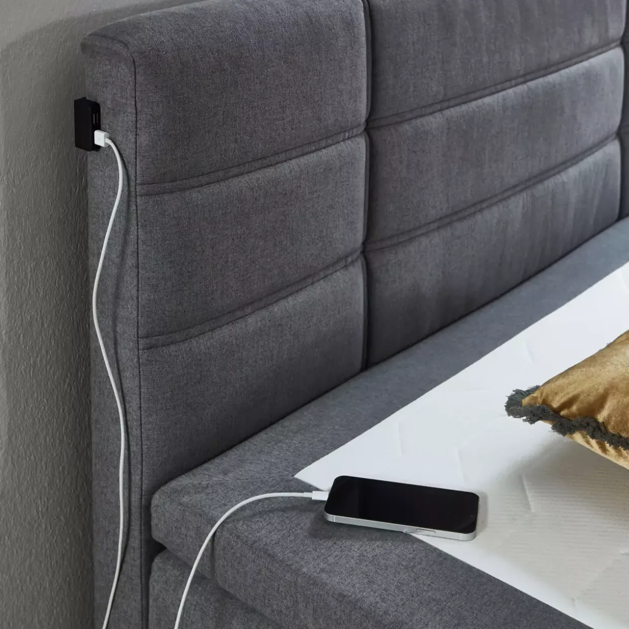 - 1 Kopfteil mit Ziersteppungen und USB-Ladebox